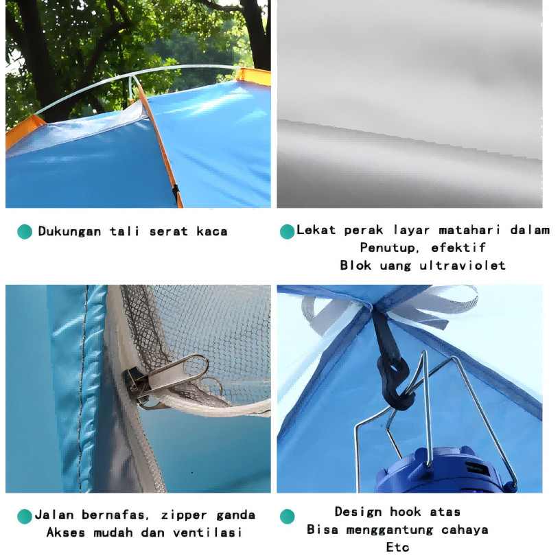 Tenda Camping Otomatis Tahan Air Tenda Camping Outdoor 2-4 Orang Tenda Gunung Tenda Portabel Lapisan Tunggal Pintu Lapis