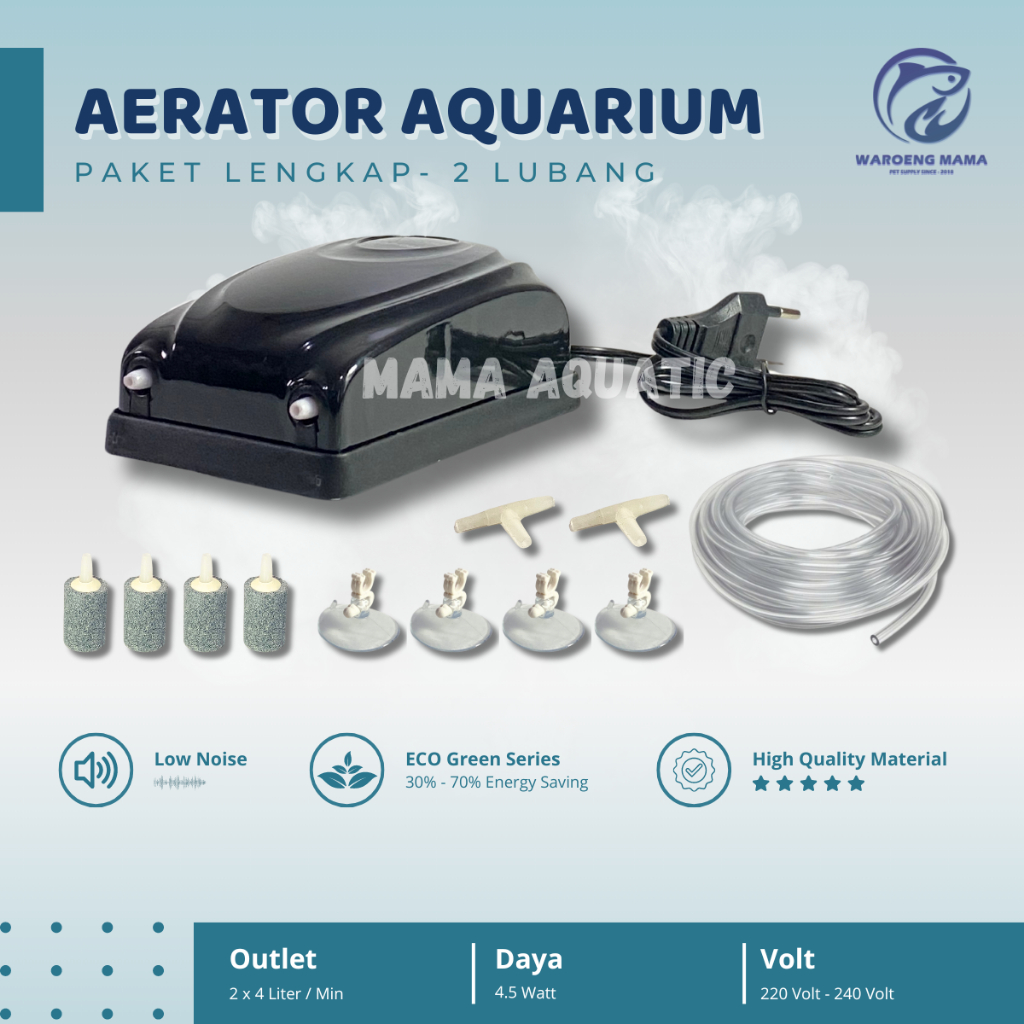Aerator Pompa Udara Aquarium 2 Lubang Paket Lengkap Air Pump 2 Lubang