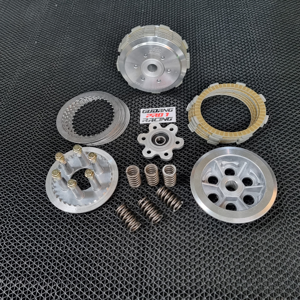 1 SET RUMAH KAMPAS KOPLING RACING. KAMPAS ISI 6, PLAT ISI 5, PER 6 ( CRF 150 VERZA NEW MEGA PRO)
