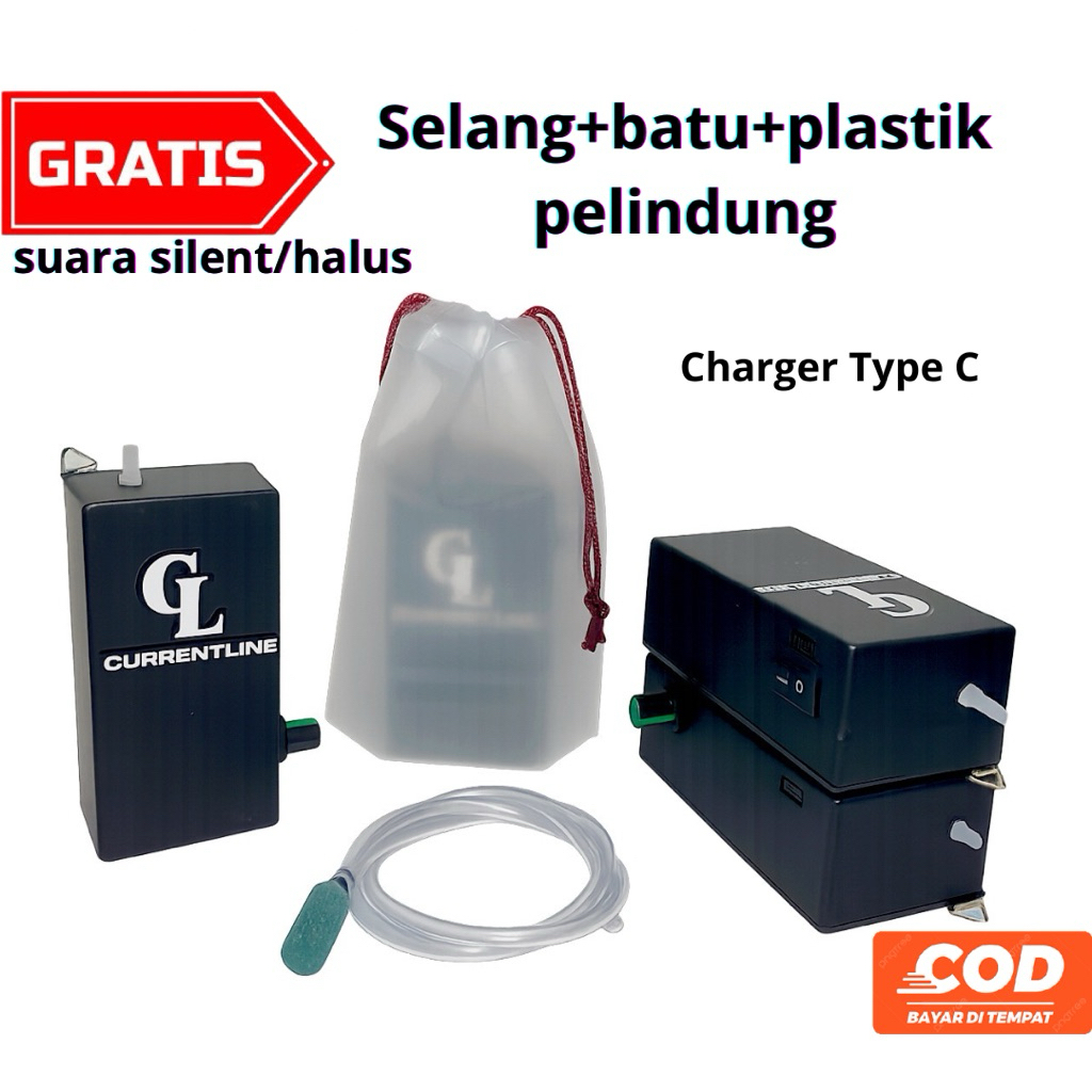 Portable Aerator Pompa Udara Baterai 24–40 Jam Bisa di Cas Type C untuk Aquarium & Mancing