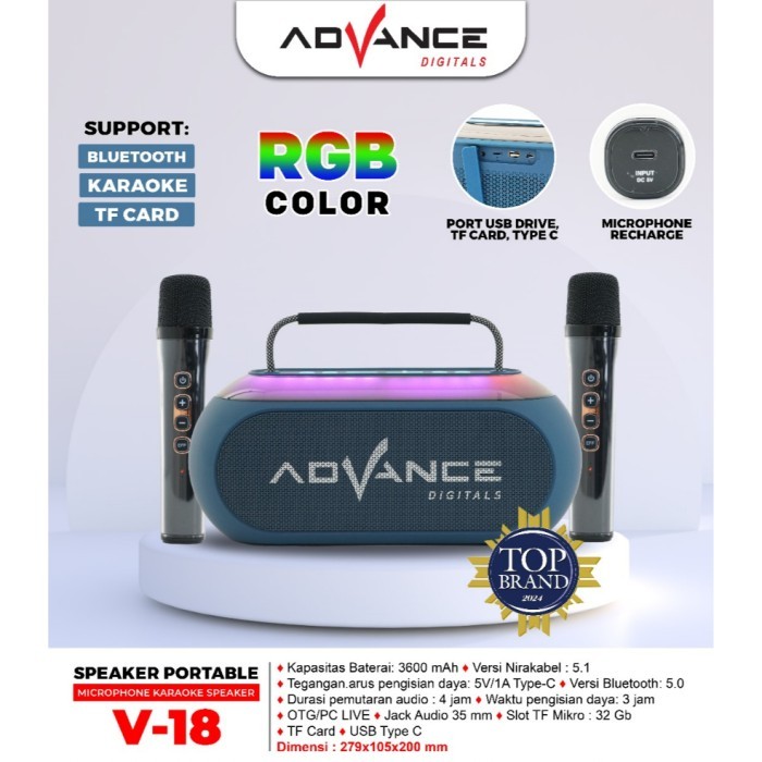 Advance V18 Portable Speaker Bluetooth Dual Microphone Karaoke Bergaransi Resmi 1 Tahun