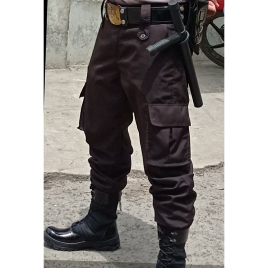 celana PDL security coklat gelap kehitaman cargo satpam panjang pria lapangan