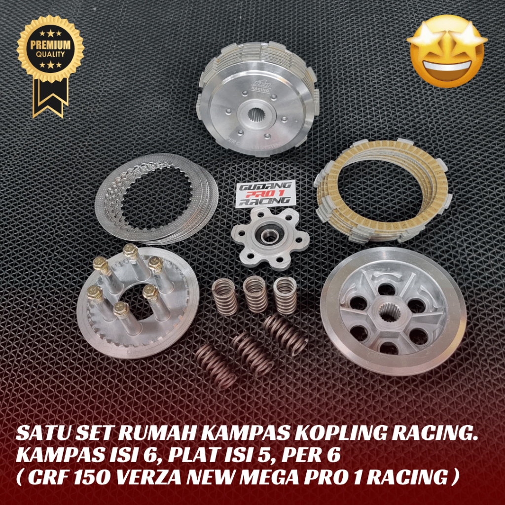 1 SET RUMAH KAMPAS KOPLING RACING. KAMPAS ISI 6, PLAT ISI 5, PER 6 ( CRF 150 VERZA NEW MEGA PRO)