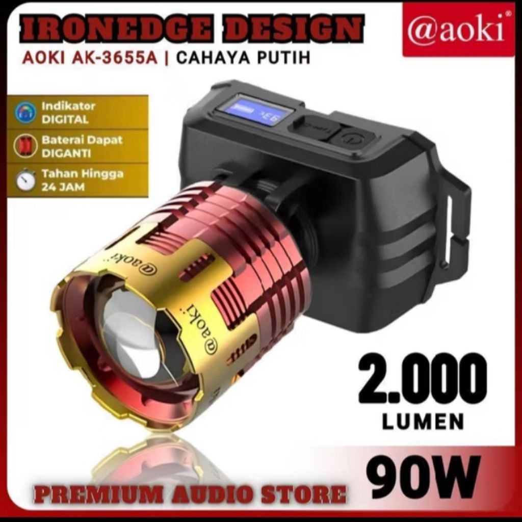 ak-3651 3652 // 3655a senter kepala zoom laser aoki 80watt pro // 90watt 1500 lumen loreng army cahaya putih dan kuning