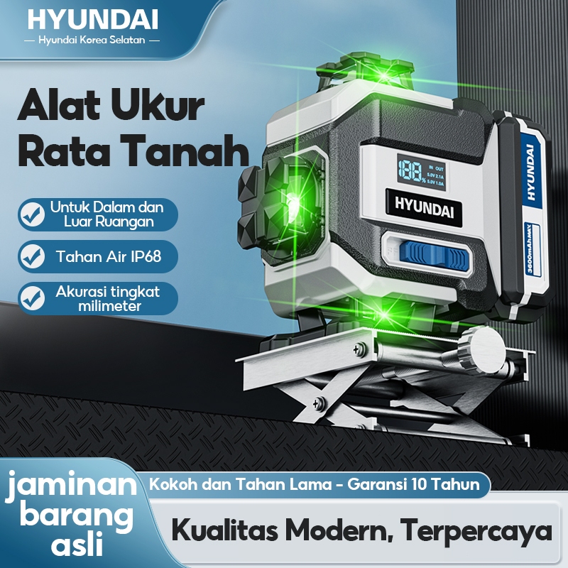 HYUNDAI Mesin Self Leveling Laser Laser Level Presisi Tinggi dengan 12 Garis Hijau with Remote