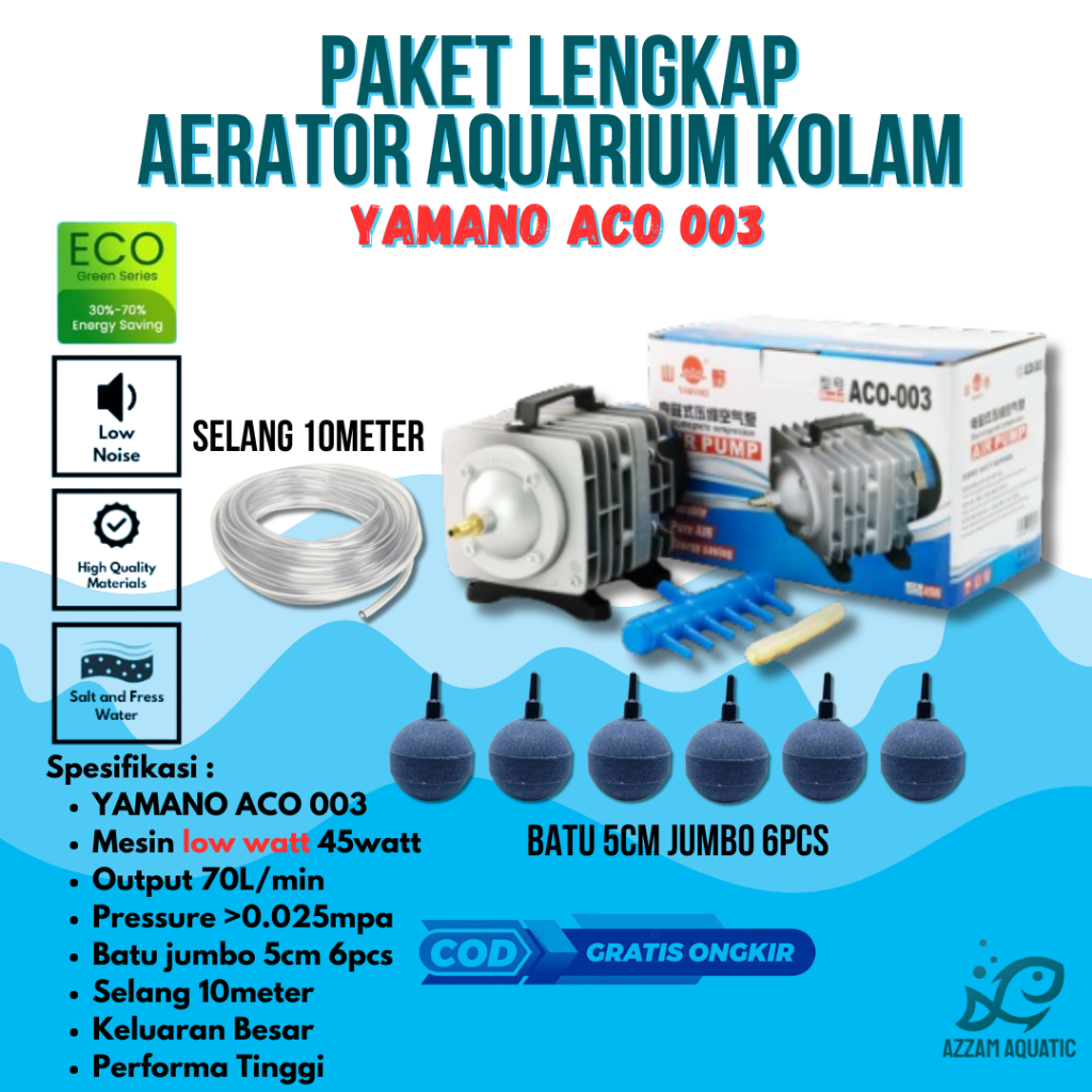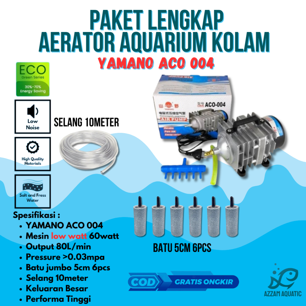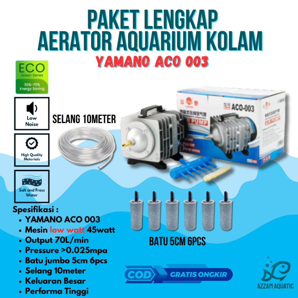 PAKET LENGKAP MESIN AERATOR BLOWER AQUARIUM KOLAM YAMANO ACO 001 ACO 003 ACO 004 HEMAT LISTRIK