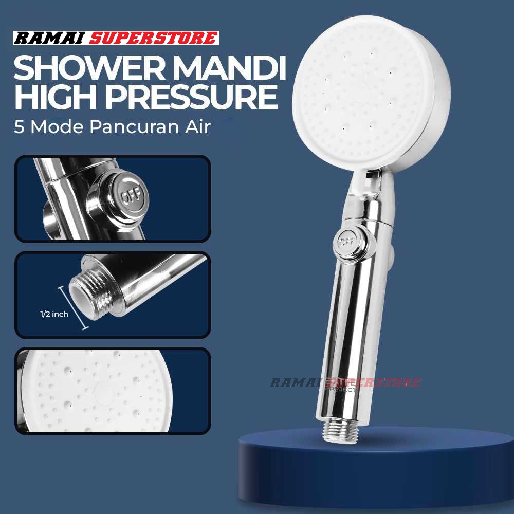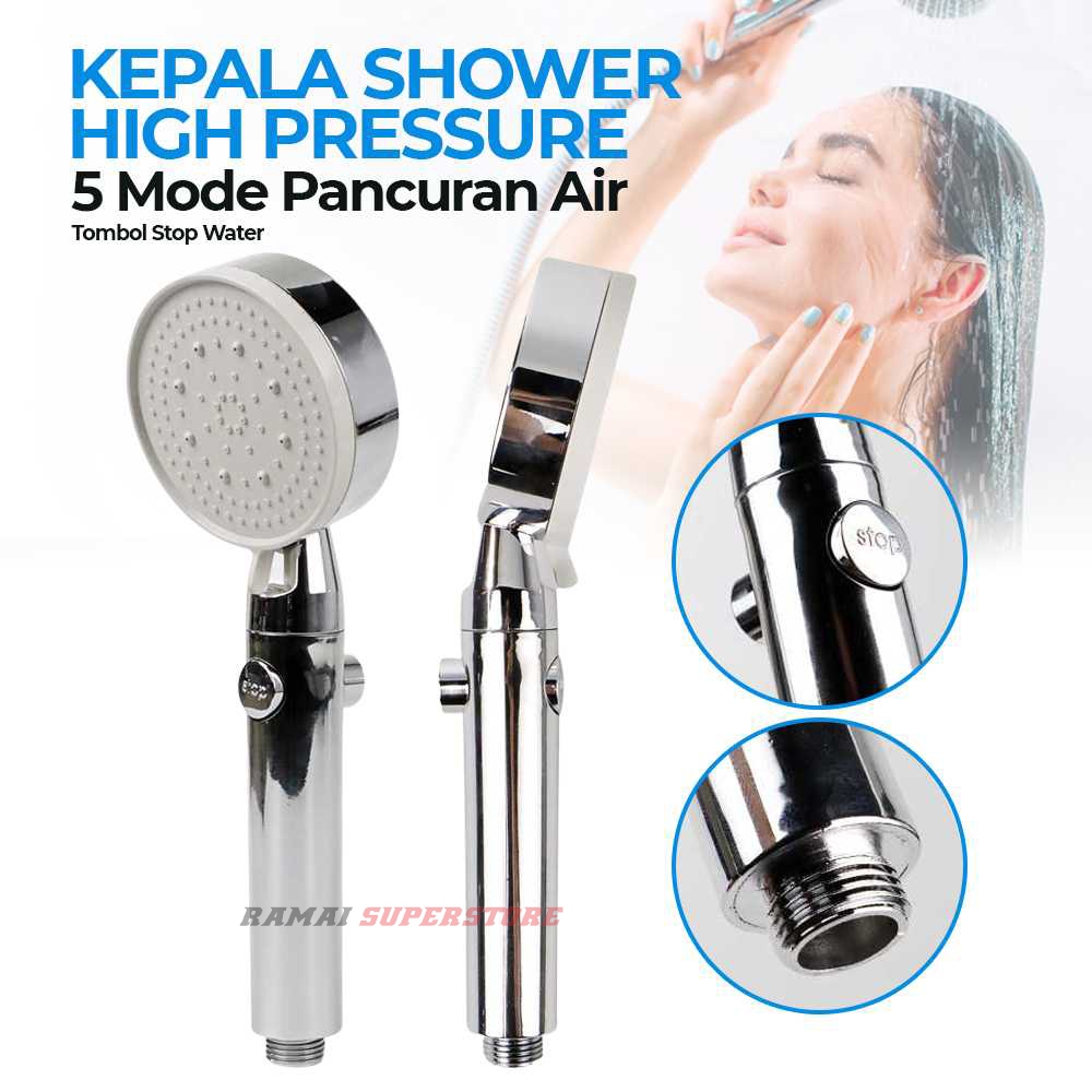 Kepala Shower Mandi Hitam Dan Silver Minimalis 5 Mode