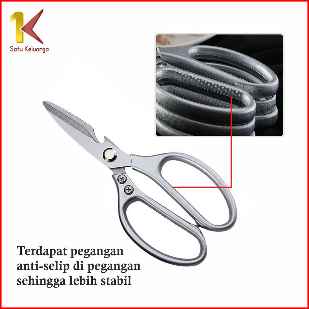 Satu Keluarga Gunting Dapur Serbaguna Stainless Tahan Karat C976 Gunting Pembuka Tutup Botol Kitchen Shear Gunting Ayam
