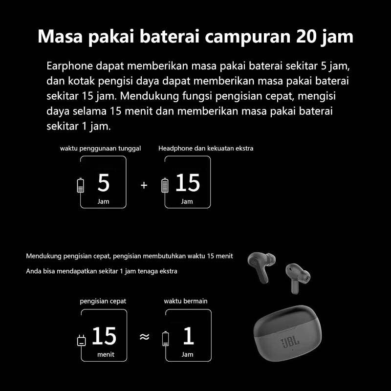 JBL Wave 200 True Wireless Deep Bass Sound Earbuds In-Ear Headset Bluetooth ,Water & Dust Resistant, Up to 15 hours of b