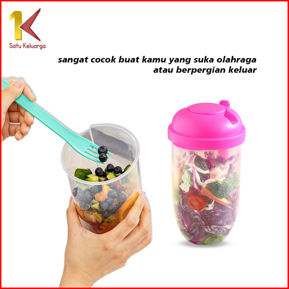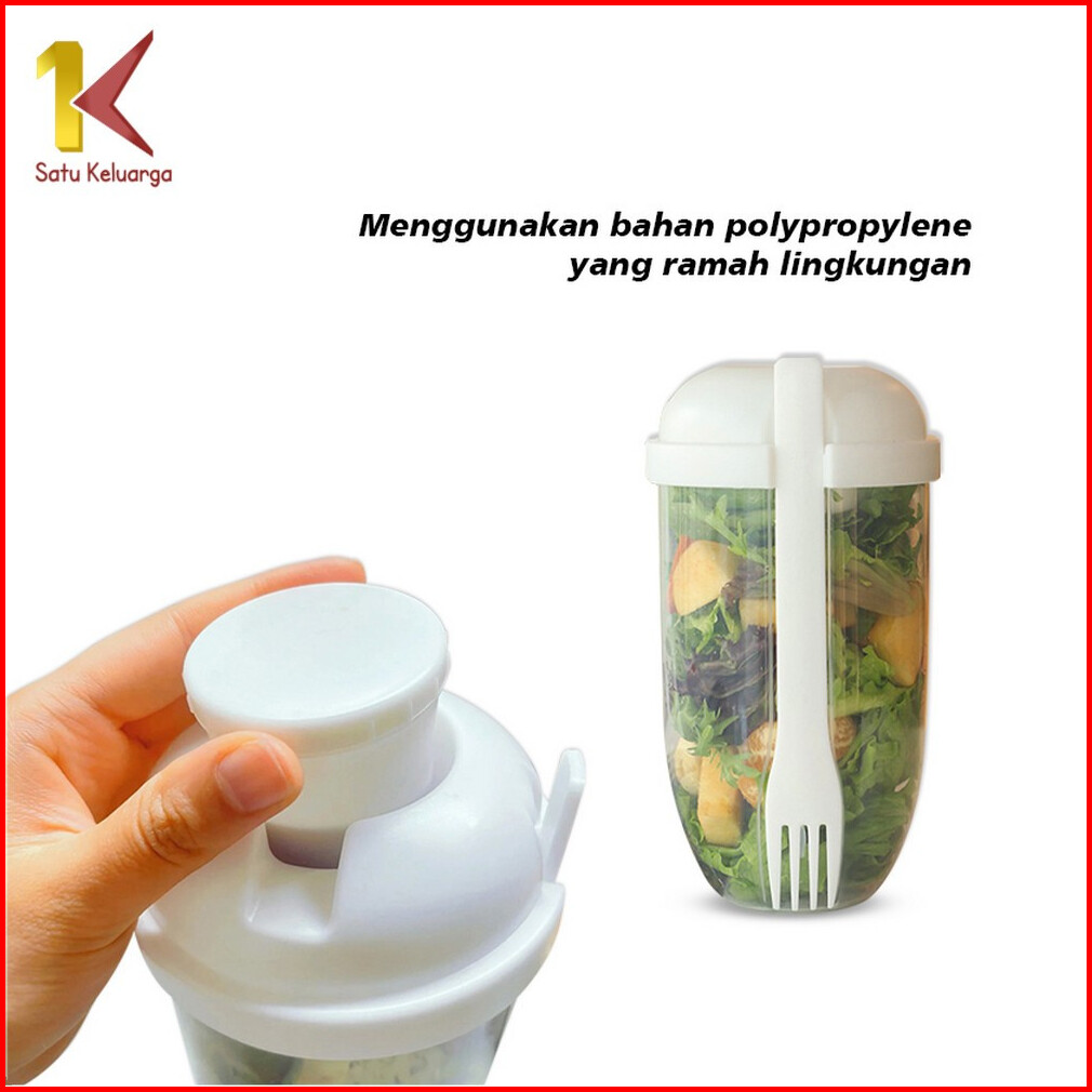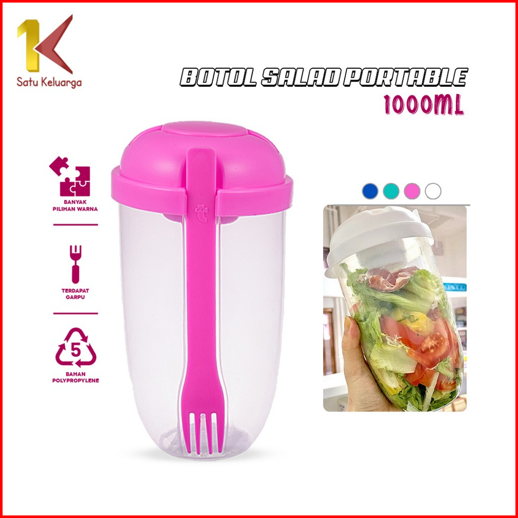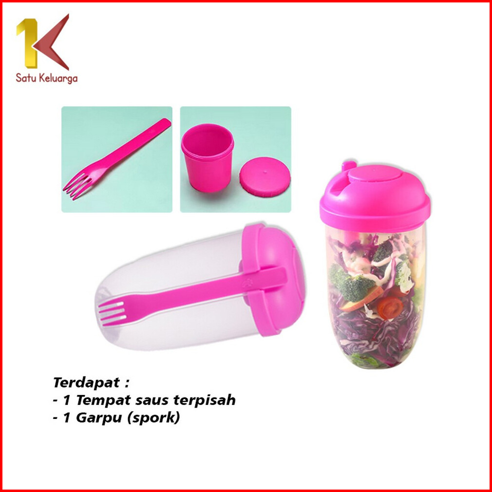 Satu Keluarga Botol Salad 1000ml Dengan Sendok Garpu Botol Saus Kecil C863 Tempat Makan Buah Sayur Salad Transparan Bpa