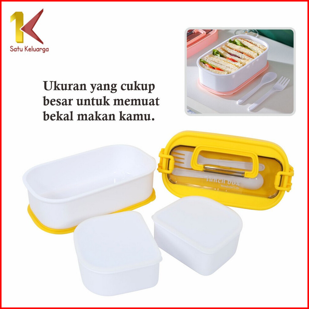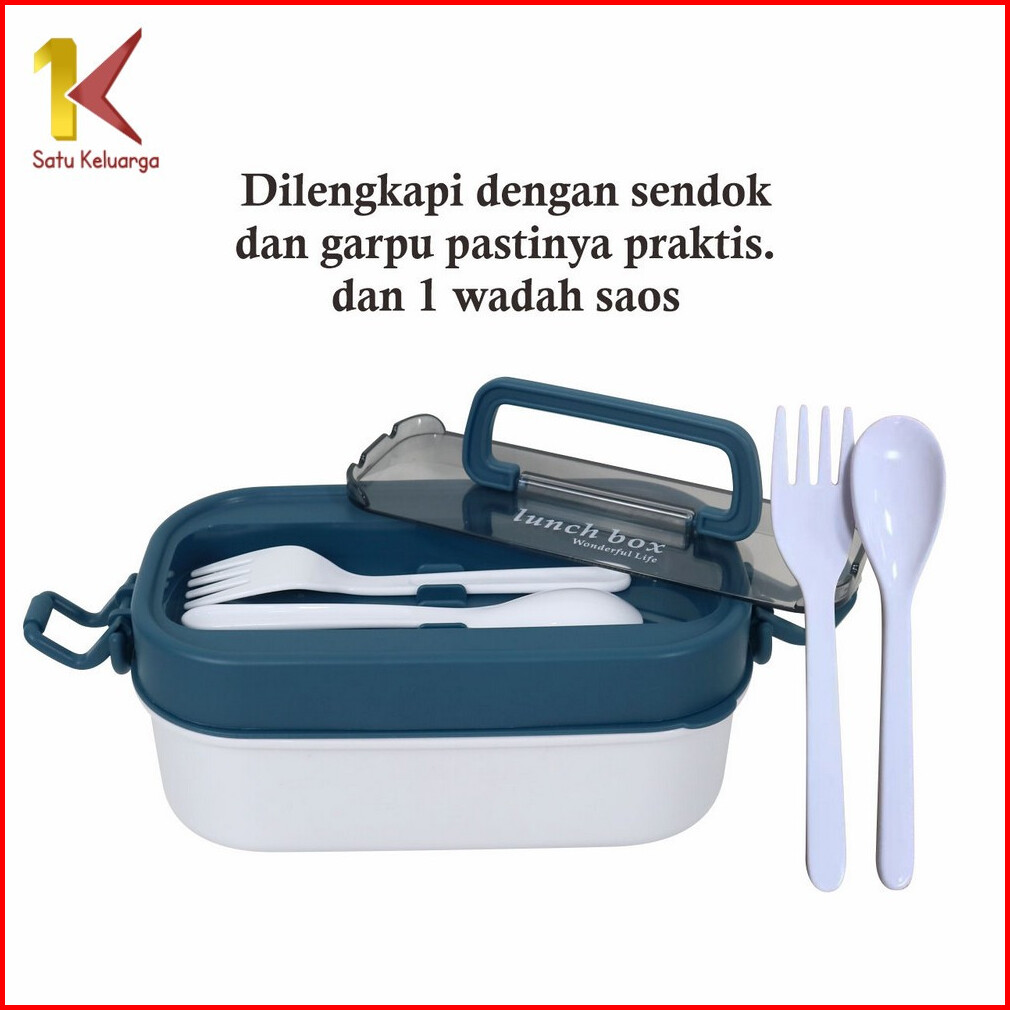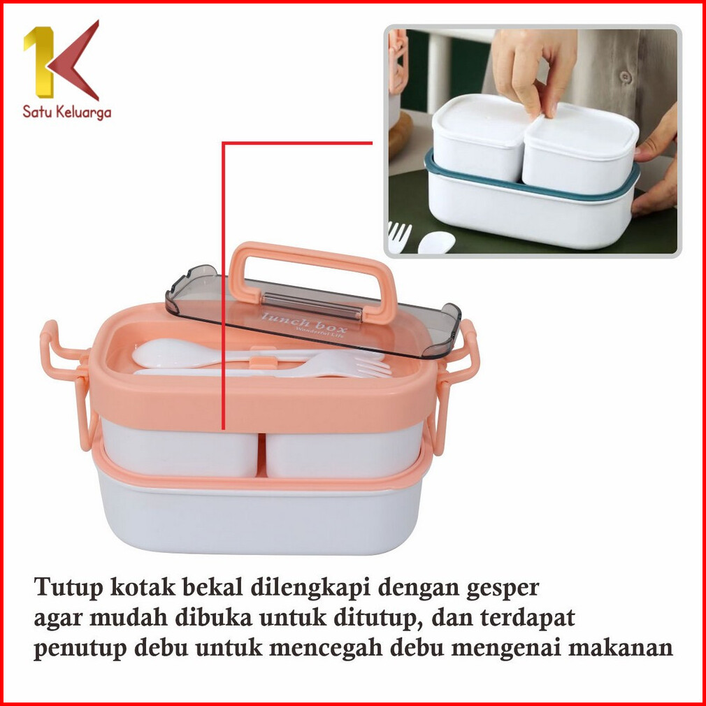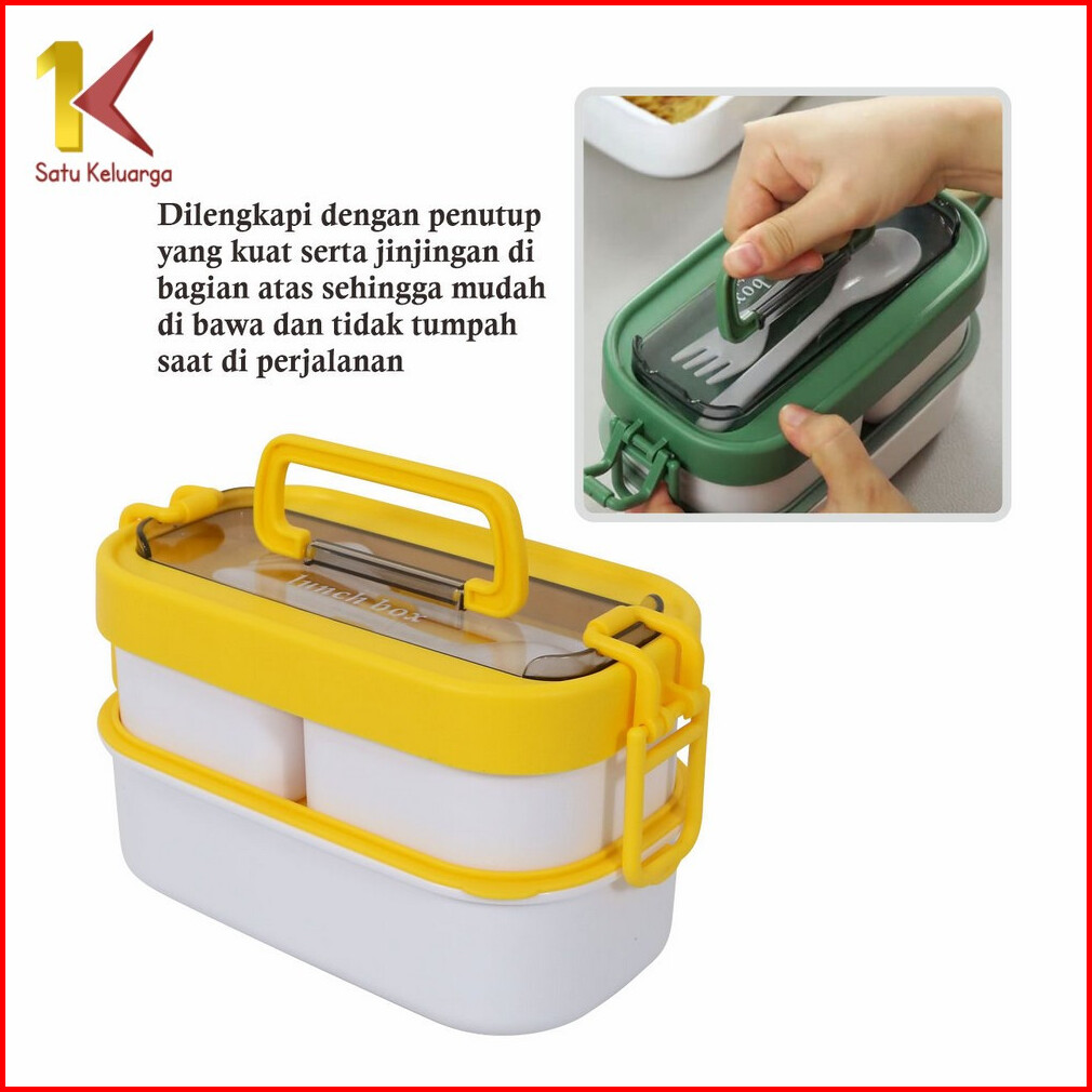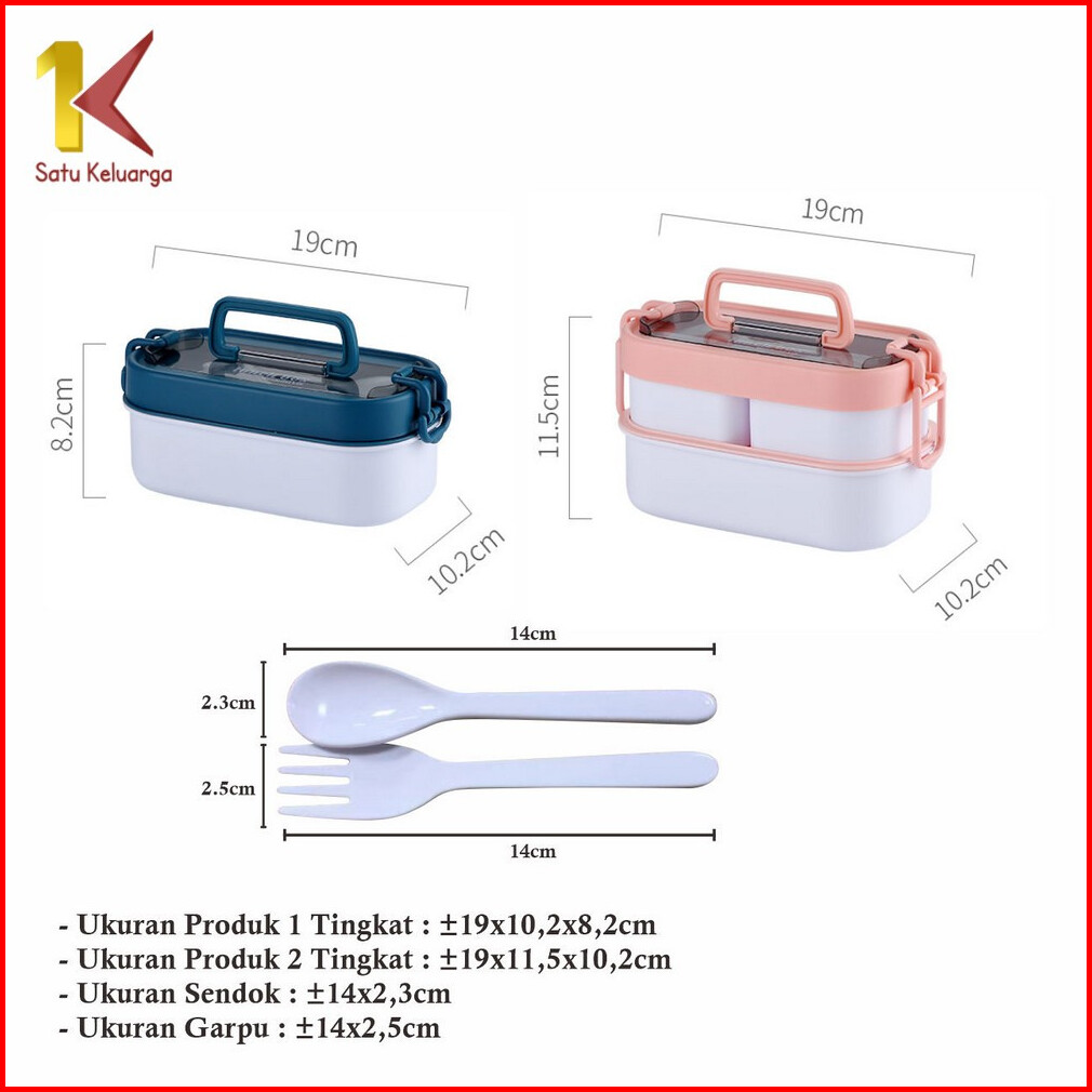 Satu Keluarga Tempat Makan 2 Tingkat Dengan Jinjingan 700ml Free Sendok Garpu C991 Lunch Box Susun 1000ml Anti Tumpah Bp