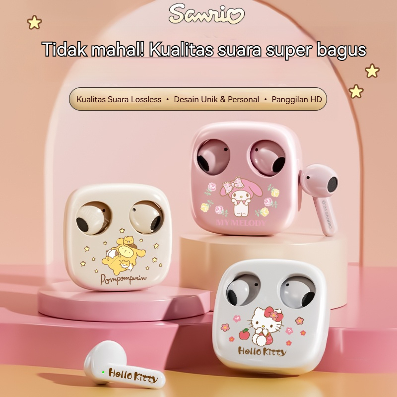 Sanrio Headset TWS Bluetooth 5.3 Earphones Kartun lucu Headphones Murah Kabel Earbuds Hifi Type-C