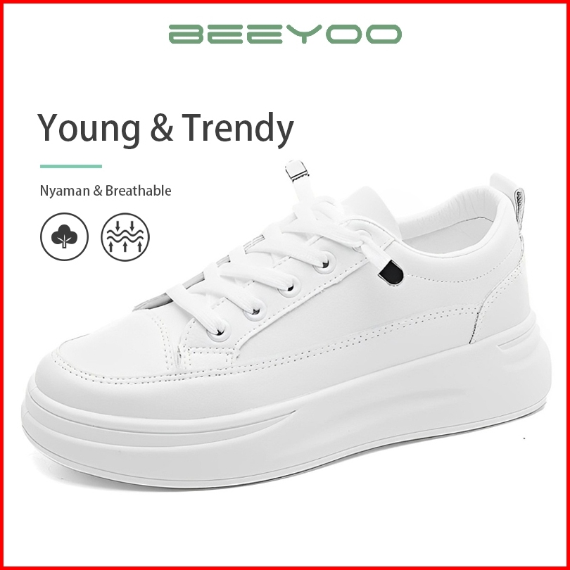 Beeyoo Sepatu Sneakers Wanita Sepatu Kets Olahraga Wanita Fashion Casual Shoes Putih Wk105