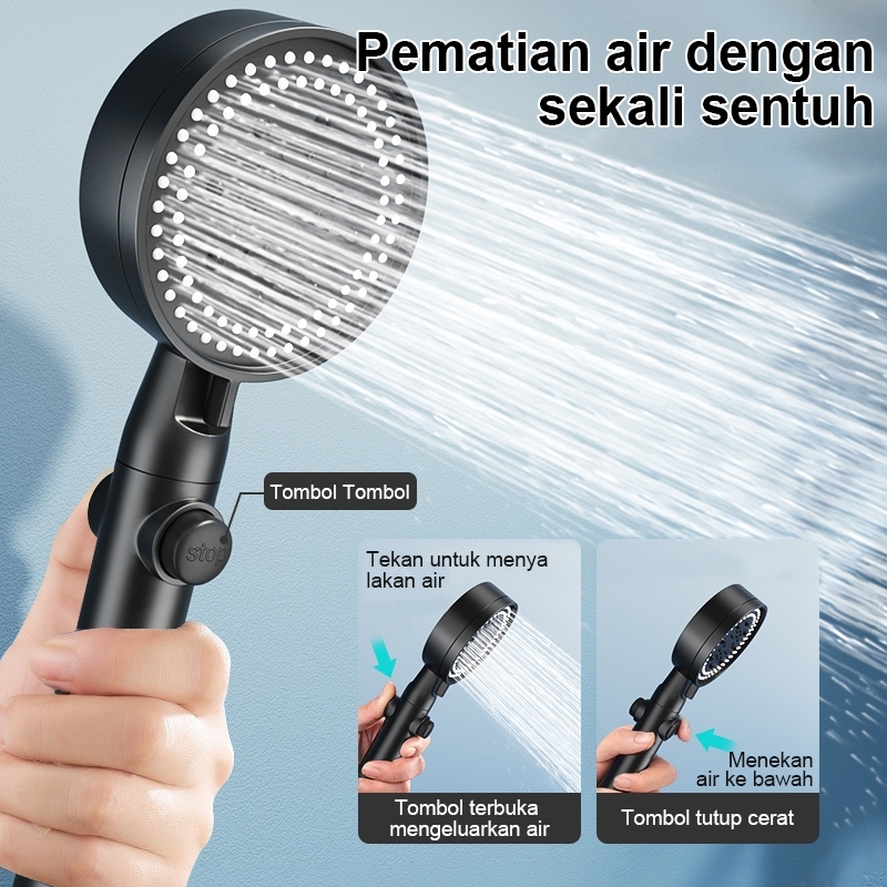 TQTQ Kepala Shower Mandi Hitam Premium Shower Head Set