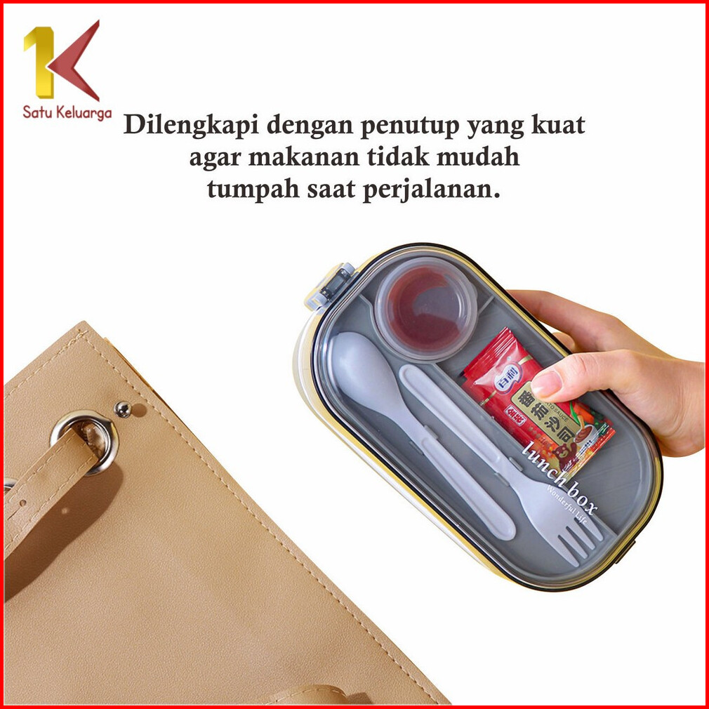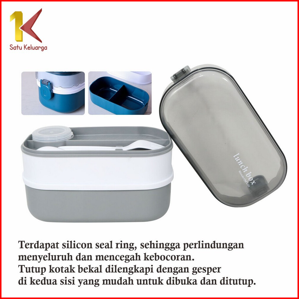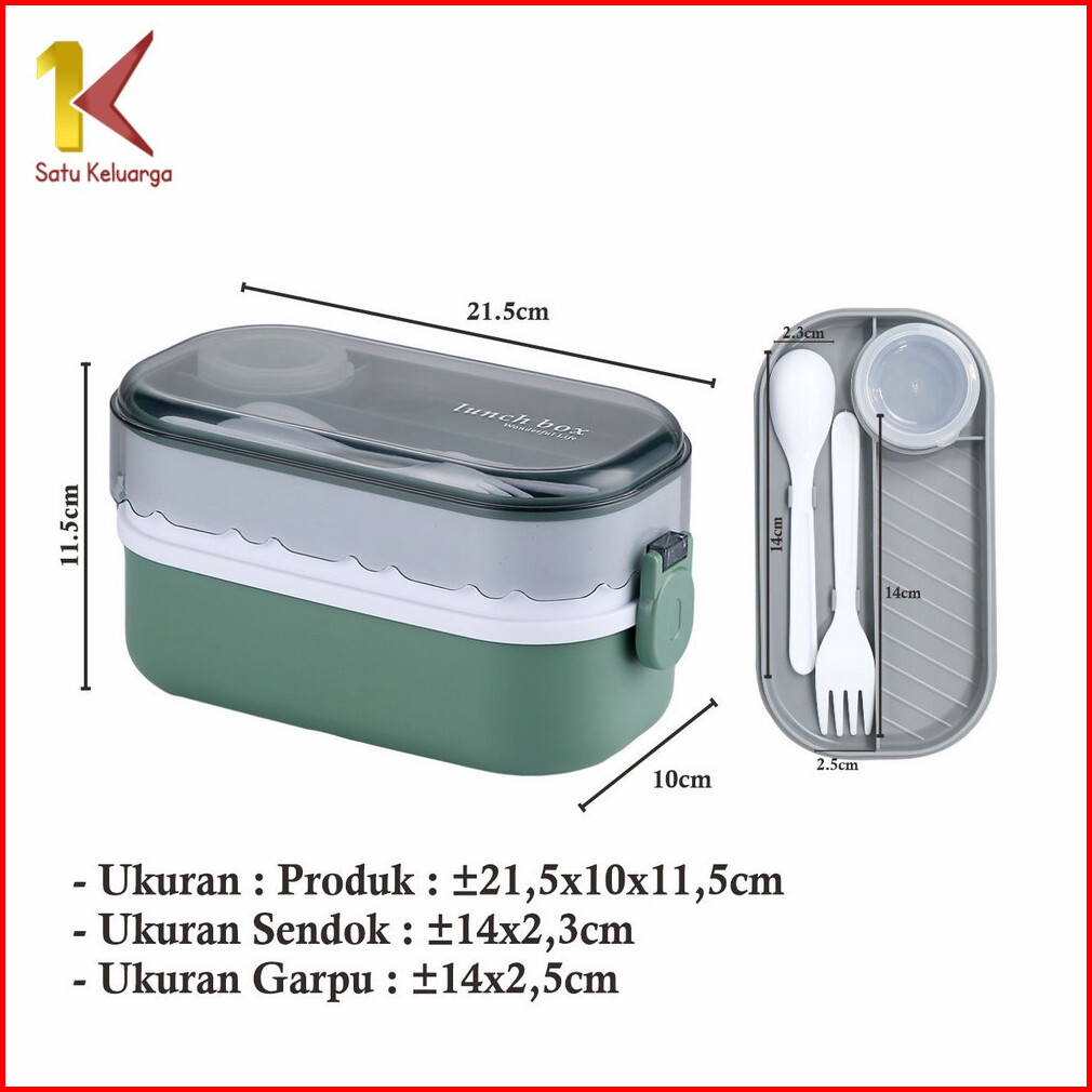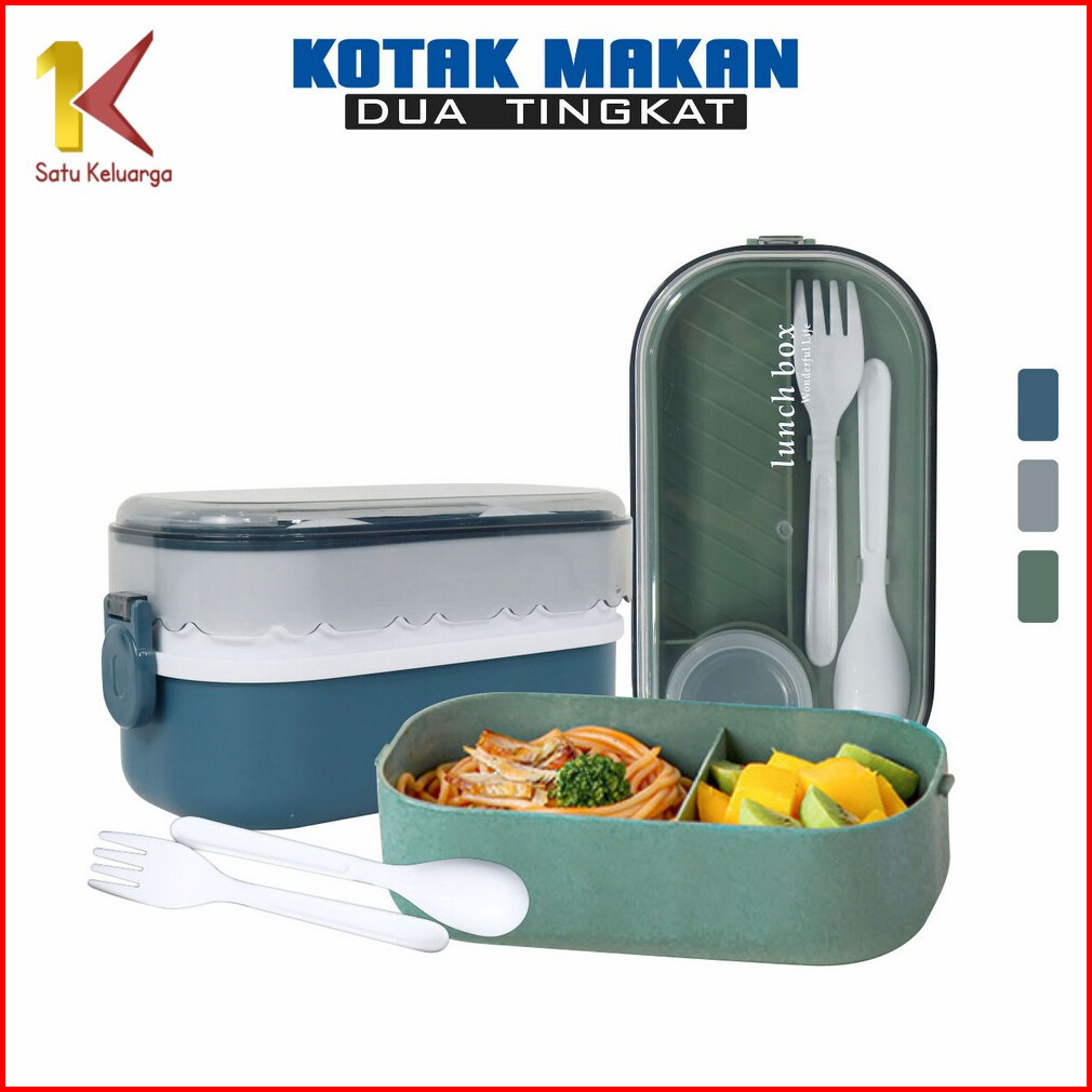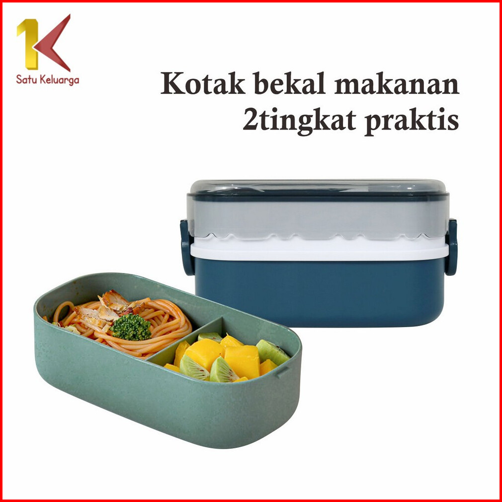 Satu Keluarga Lunch Box Bento Set 1000ml Dengan Sendok Garpu C985 Bpa Free Kotak Makan 2 Tingkat Anti Tumpah Portable Ko