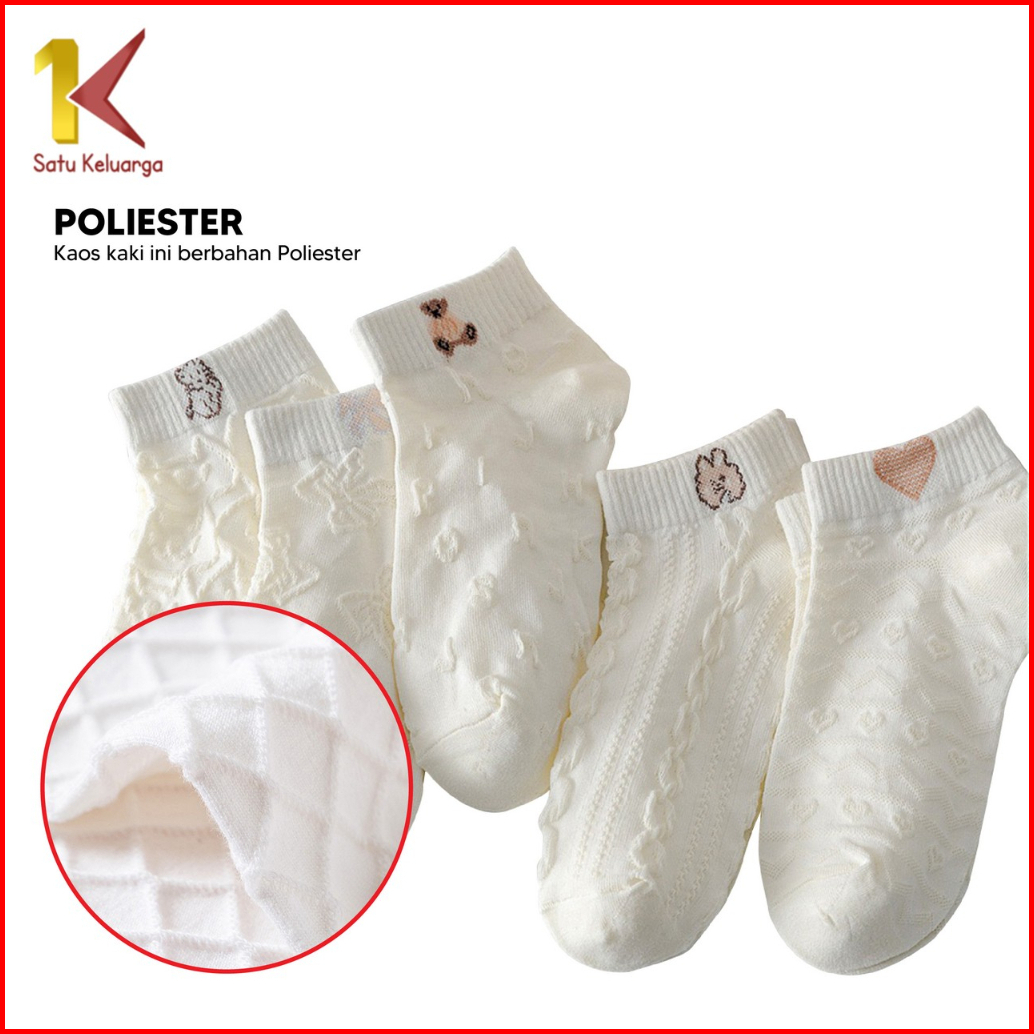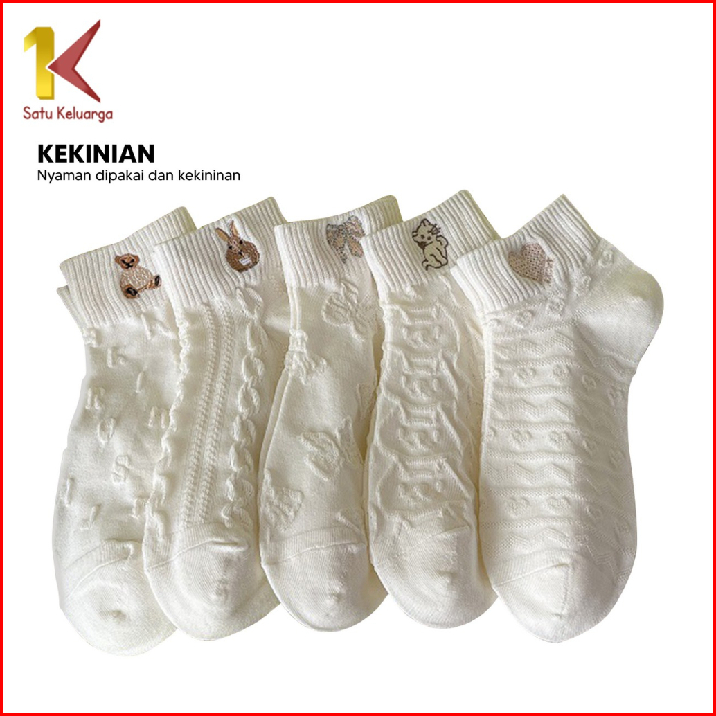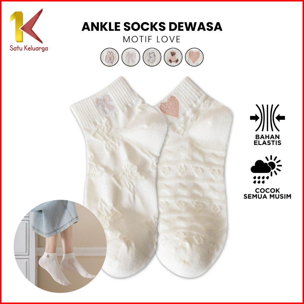 Satu Keluarga Kaos Kaki Wanita Semata Kaki Motif Bordir P576 Kaos Kaki Putih Karakter Motif Love Korean Style Kaos Kaki