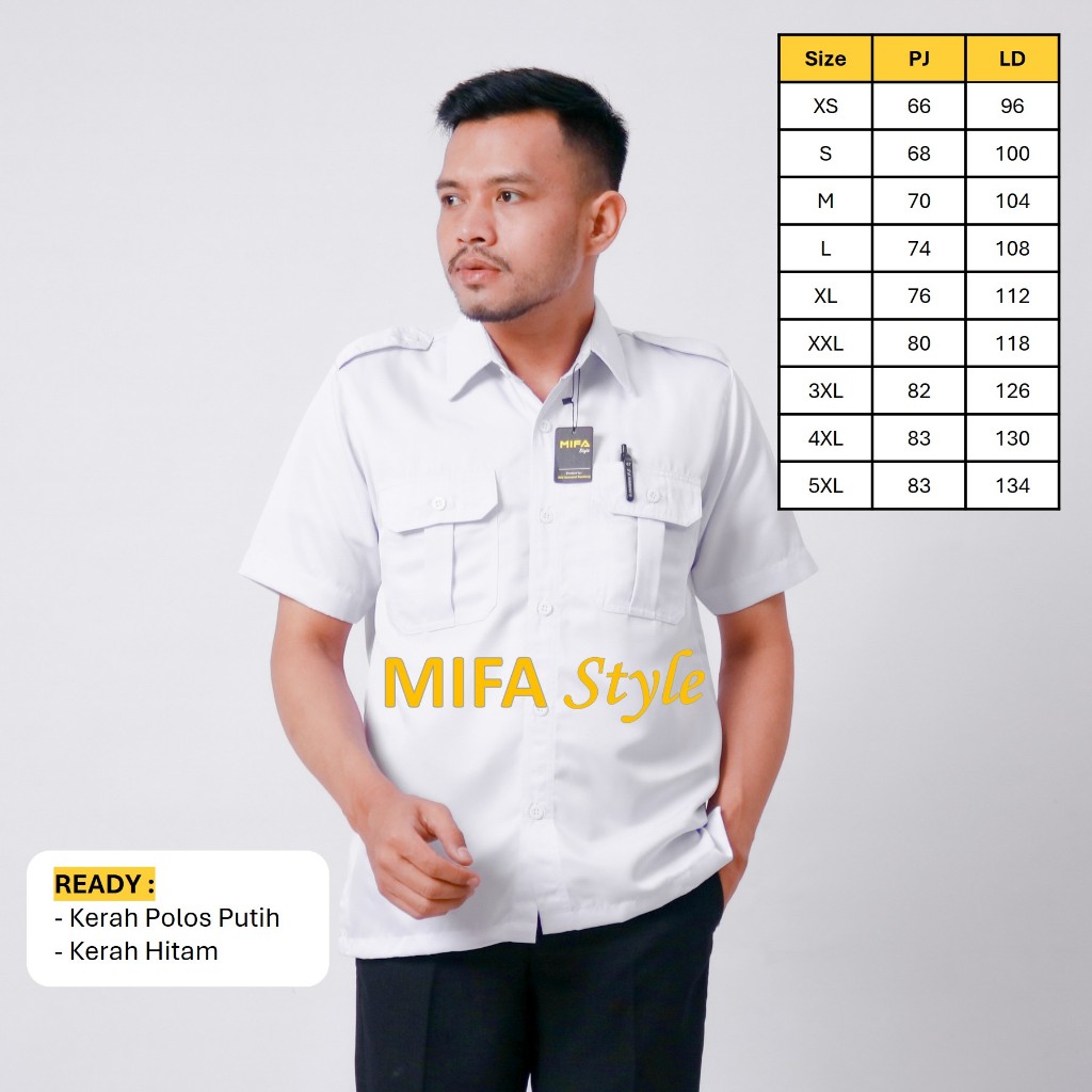 MIFA Baju Dinas Putih Pria Lengan Pendek Seragam PNS Putih Pria Kemeja PDH Putih PNS Pria Krah Hitam