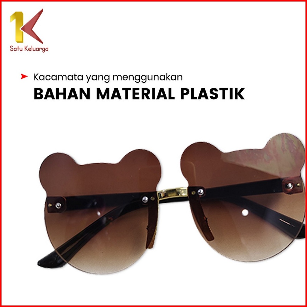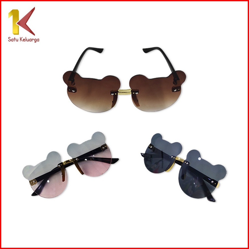 Satu Keluarga Kacamata Beruang Hitam Anak Bayi C672 Sunglasses Kids Fashion Kaca Mata Bear Shape Tanpa Bingkai Korean St