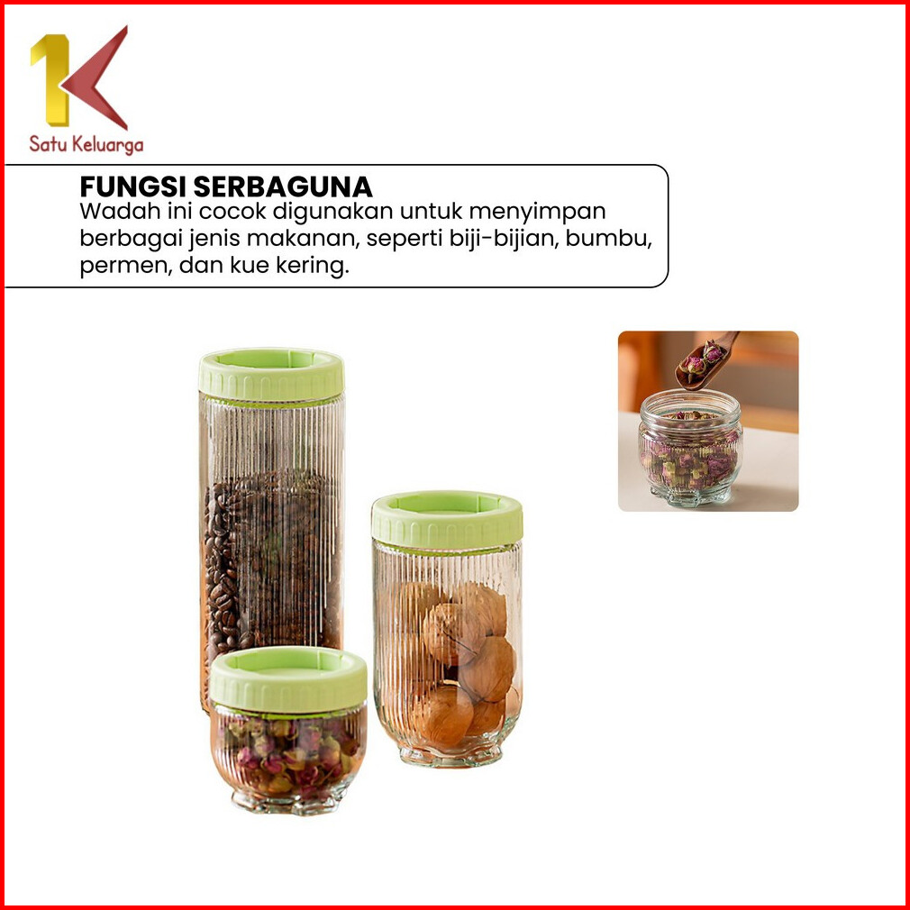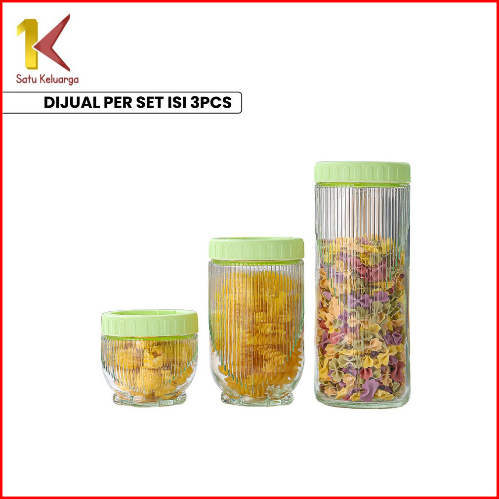 Satu Keluarga Toples Kaca Gladies Hazel Set 3pcs C1171 Toples Kue Lebaran Stoples 3in1 Anti Tumpah