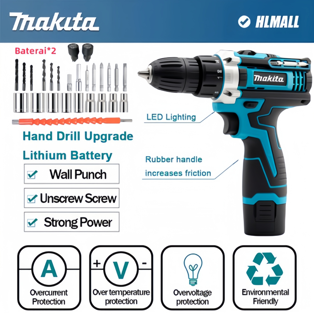MAKITA Bor Listrik Tanpa Kabel 96V Mesin bor 2baterai 10mm bor listrik murah Bor Dampak Tanpa Kabel Bor Multifungsi Oben