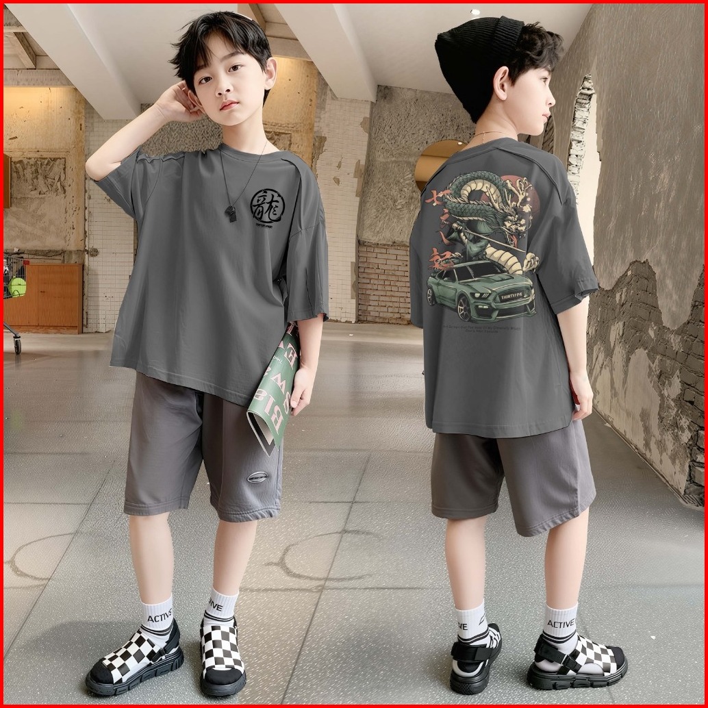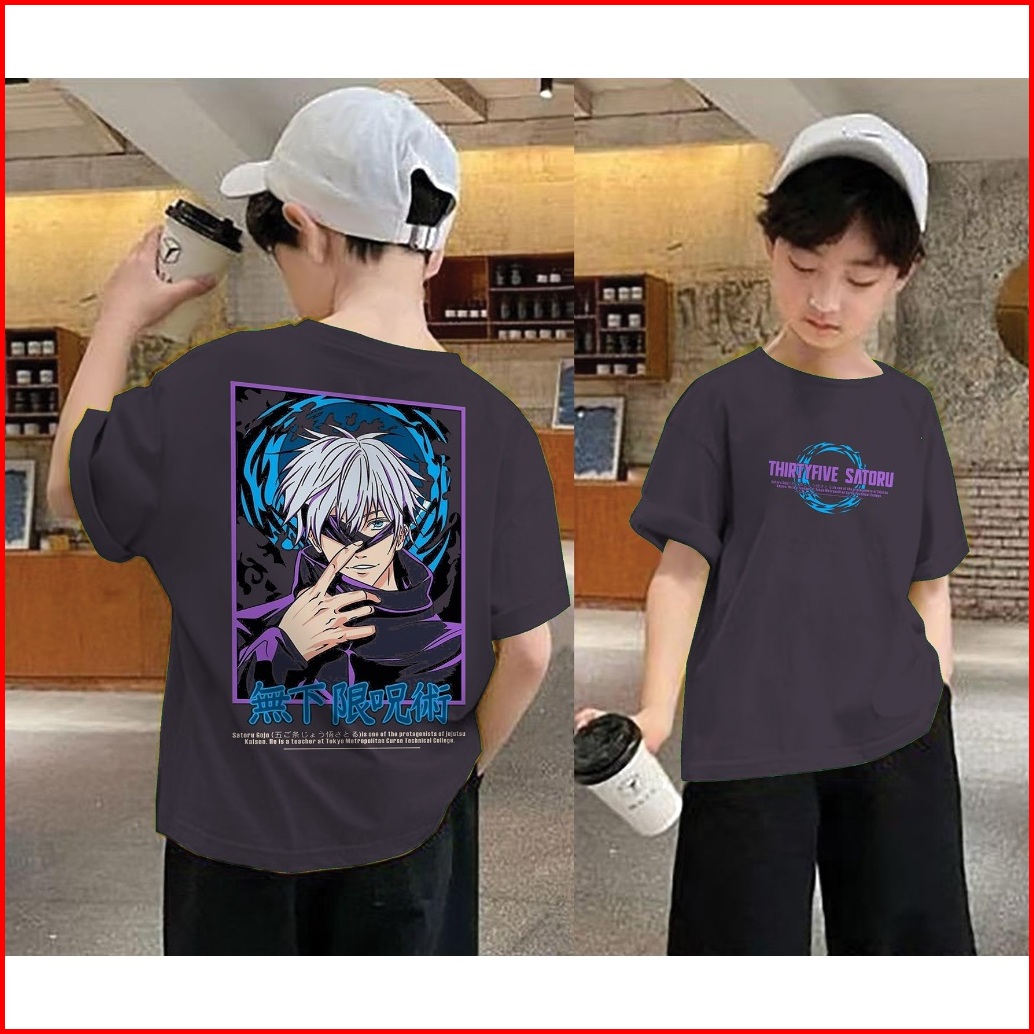Kaos Anak Usia 8 - 16 Tahun Warna Abu Tua Terbaru Sablon Depan Belakang Junior Terlaris