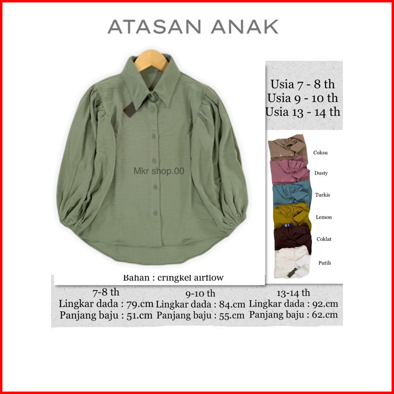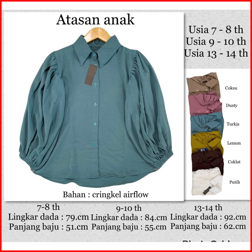 Atasan Anak Lengan Balon 7 8 9.10 11 12 13 14 Tahun Atasan Anak Perempuan Bluse Baju Anak