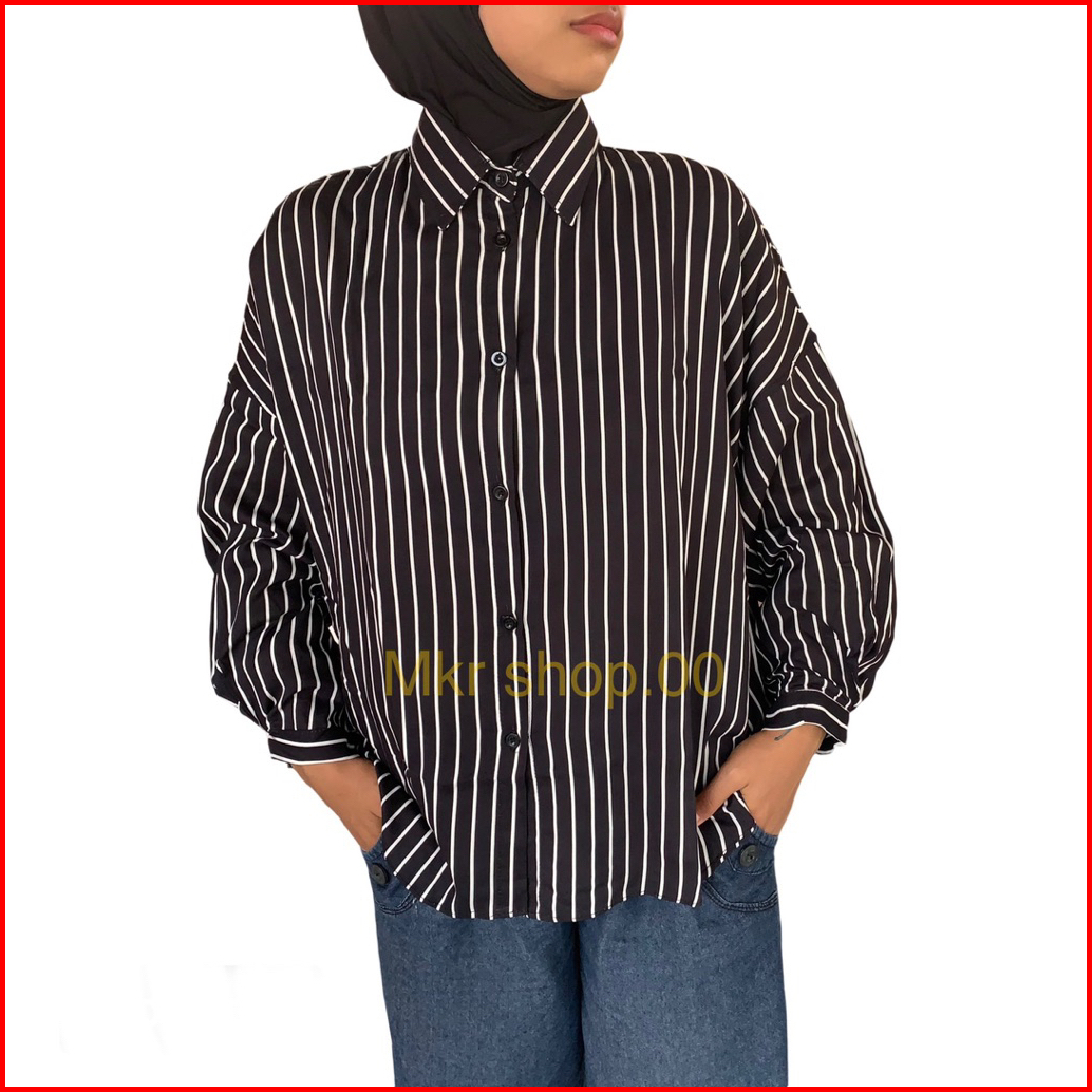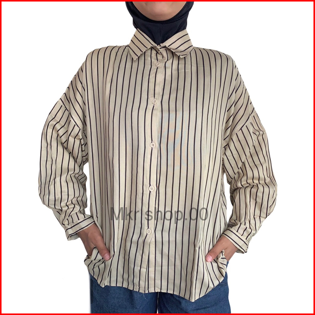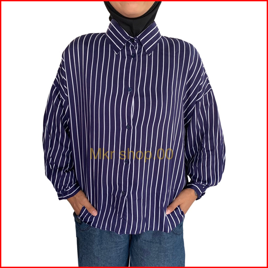 Atasan Kemeja Blouse Wanita Stripe Salur