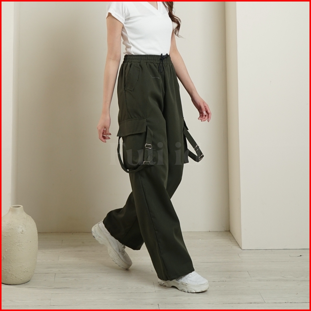 Futi Id - Zeni Pants Celana Cargo Highwaist Wanita Loose Pants Wanita Korea