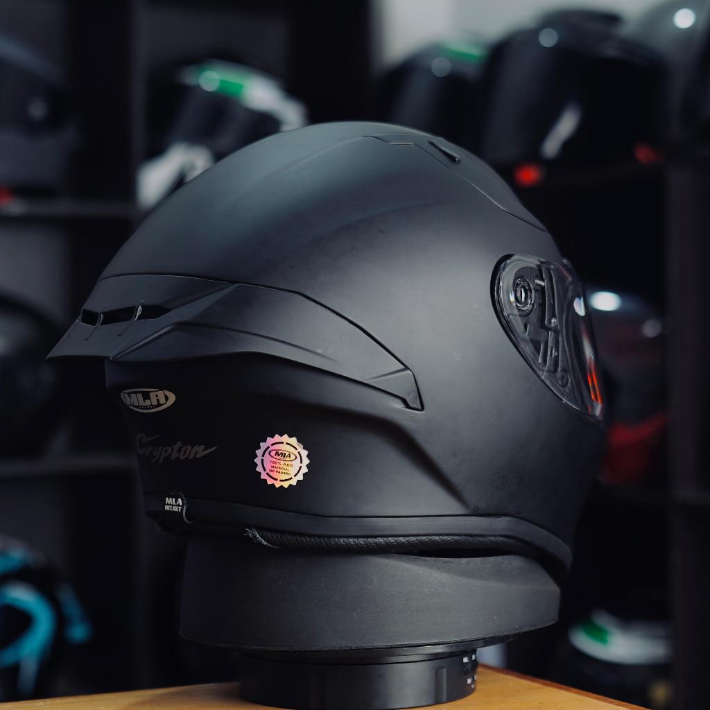 HELM FULL FACE MLA CRYPTON SOLID COCOK UNTUK RIDING SAFETY HITAM DOFF KACA VISOR BLUE IRIDIUM HELM FULL FACE PRIA/WANITA DEWASA SNI