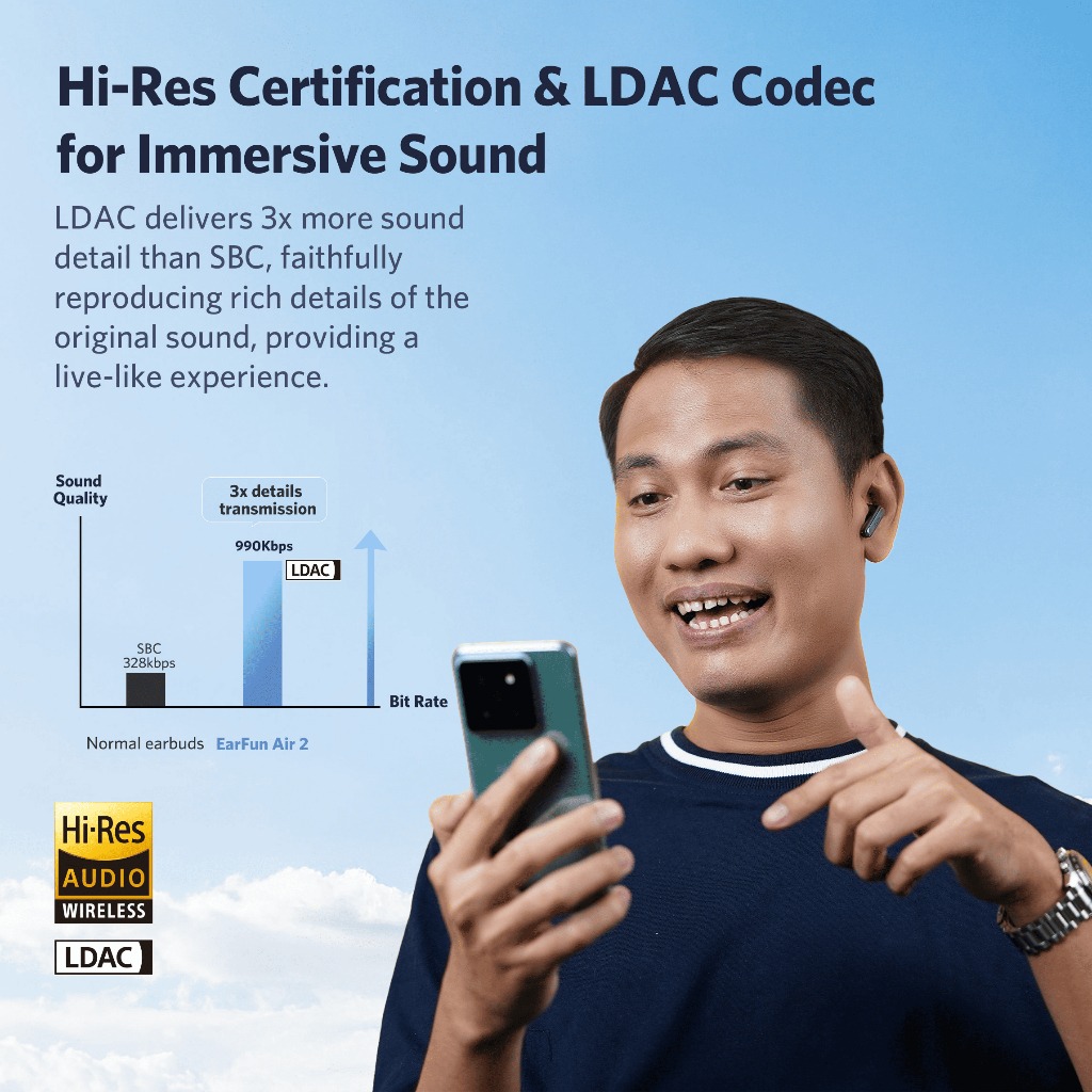 EarFun Air 2 - Black - Hi-Res LDAC budget TWS with APP Support
