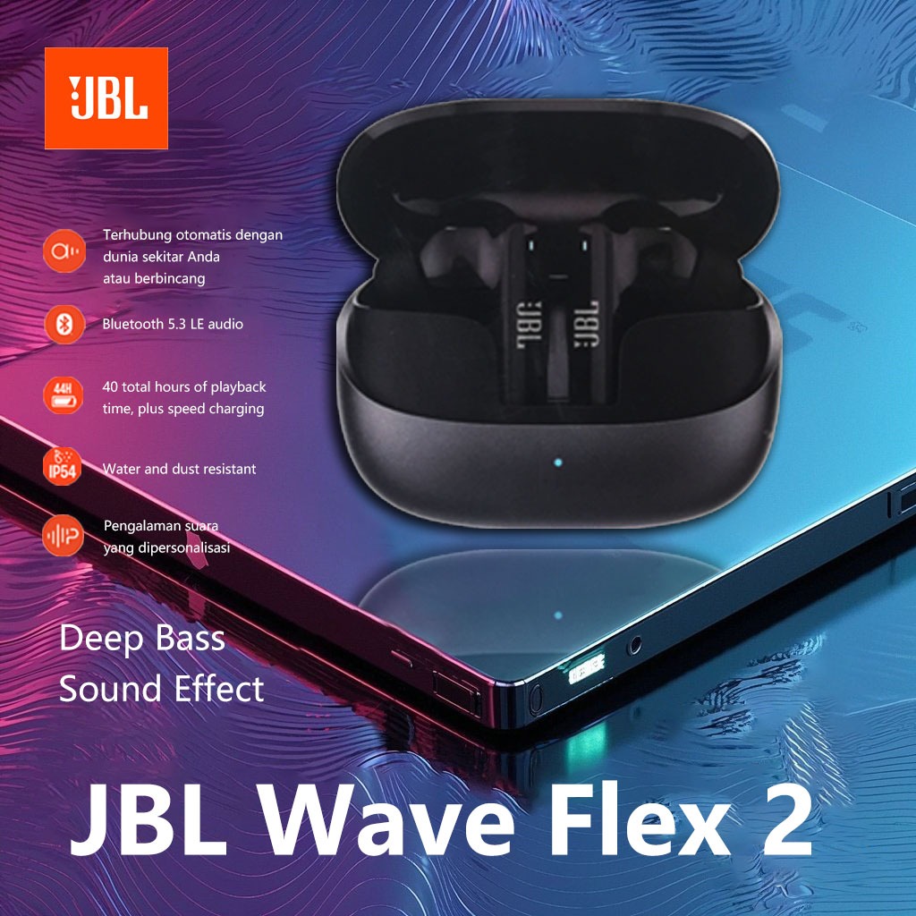 Headset JBL Wave Flex 2 True Wireless Bluetooth Earbuds In-Ear Water & Dust With Microphone Earphone