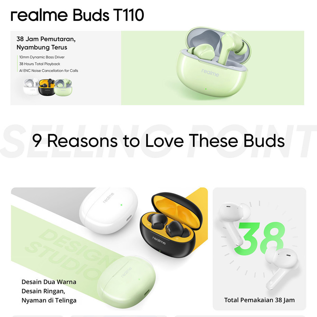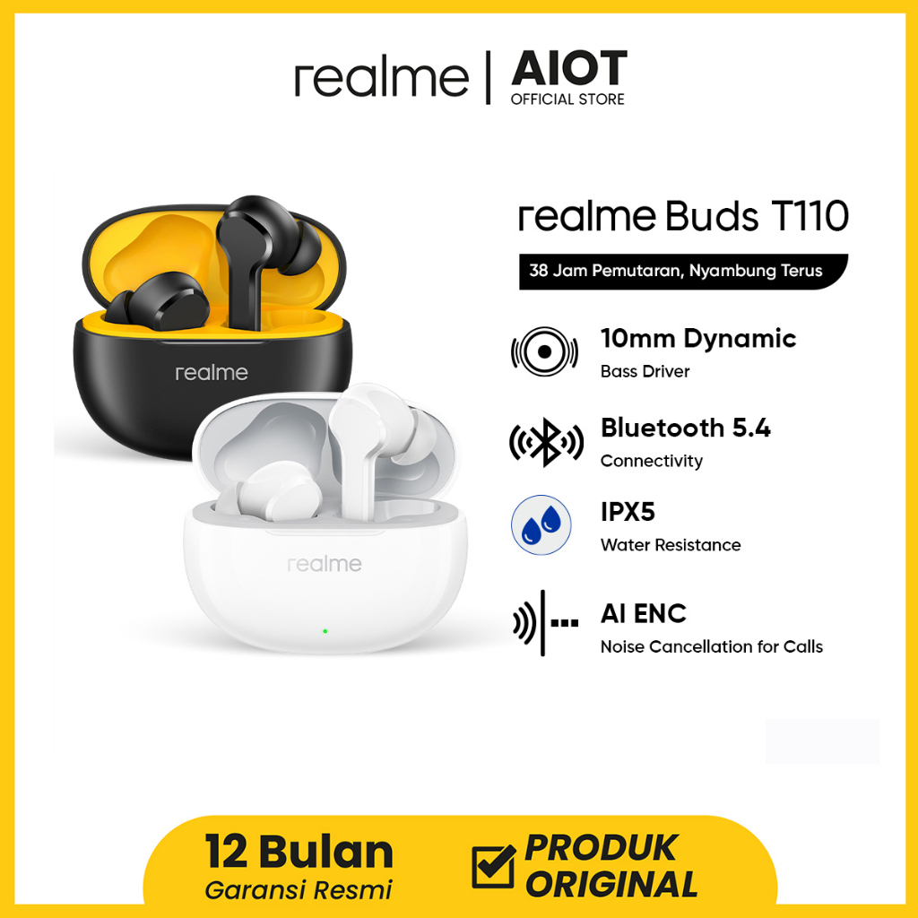 (Pilihan Resmi,Event Waktu Terbatas) realme buds T110 earphone TWS headest 102dB Volume Boost Mode | Bluetooth 5.4 | IP