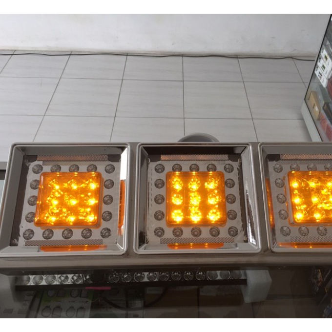 LAMPU STOP LAMP VARIASI REM BELAKANG MANTENG TRUK HINO KOTAK MIKA PUTIH STAINLESS 60 CM 24 VOLT