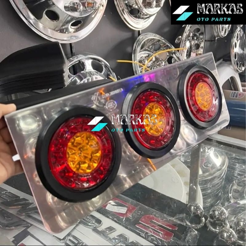 Sepasang Lampu Led Stop Lamp Truck 12volt - 24volt Model 402 / 302 Stainless Merah Kuning Lampu Rem Belakang Truk Varias