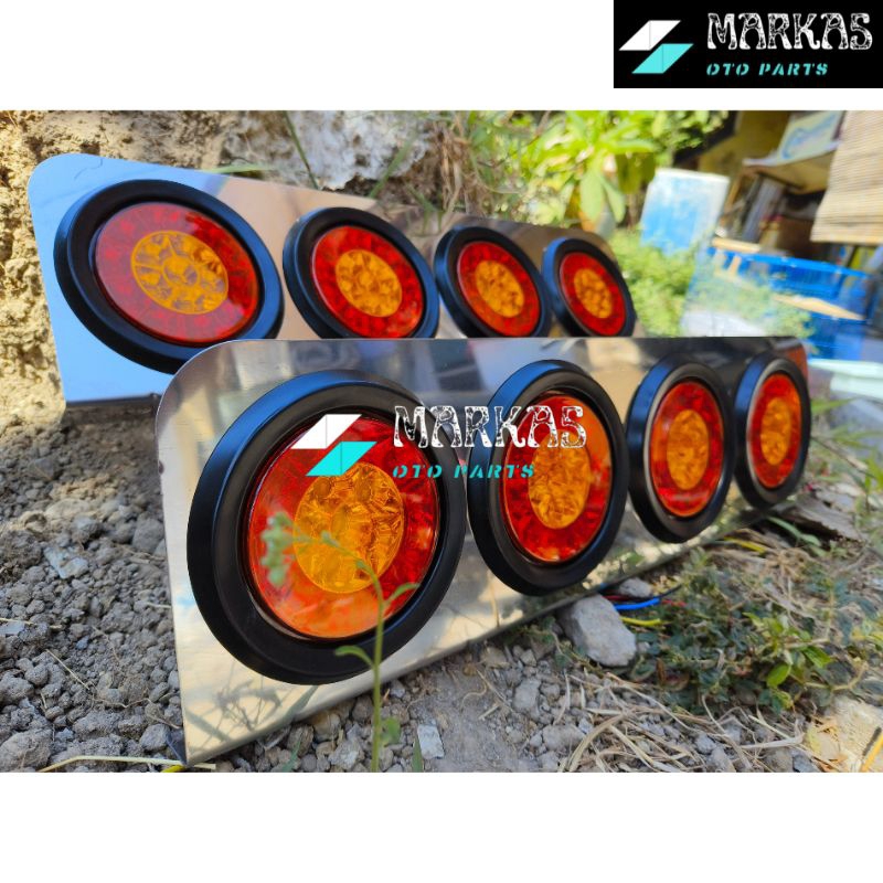 Sepasang Lampu Led Stop Lamp Truck 12volt - 24volt Model 402 / 302 Stainless Merah Kuning Lampu Rem Belakang Truk Varias