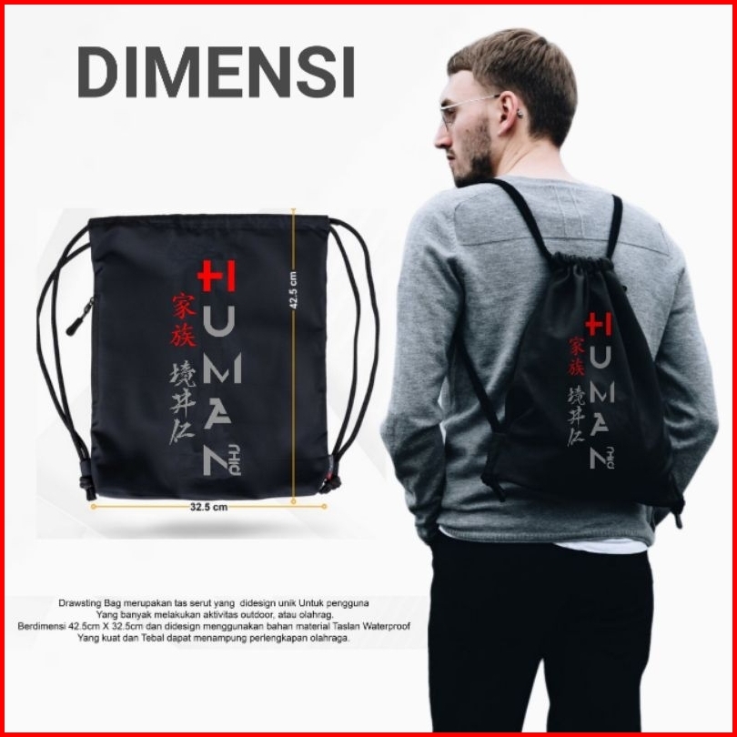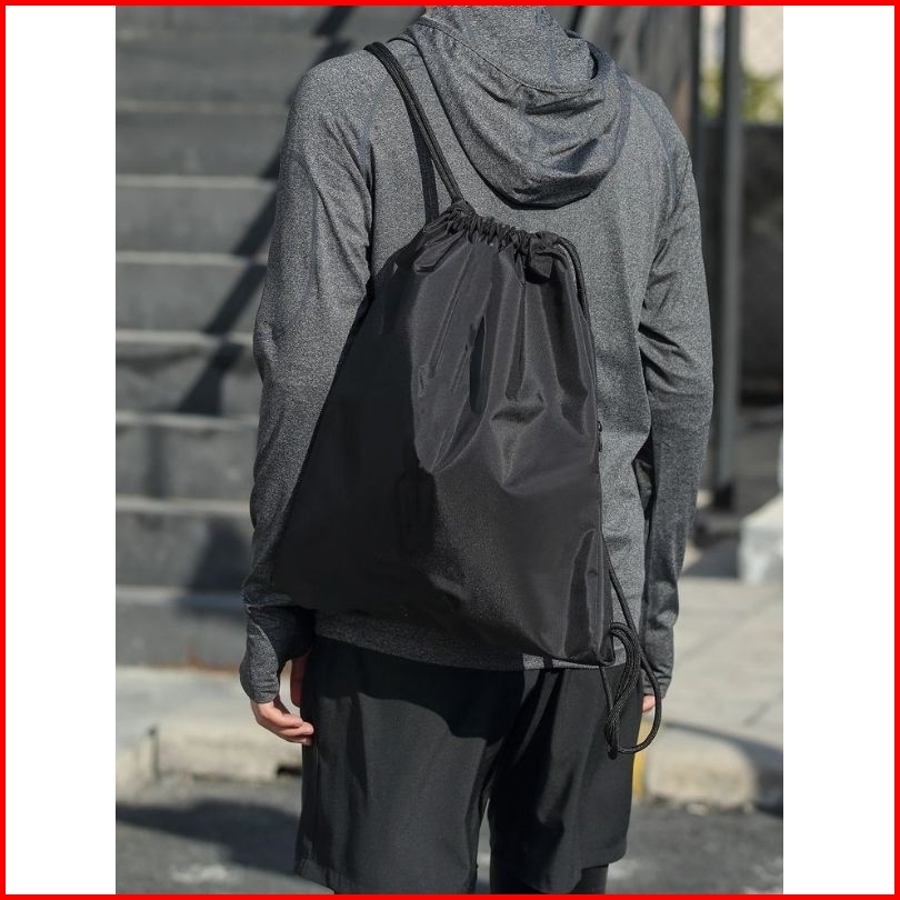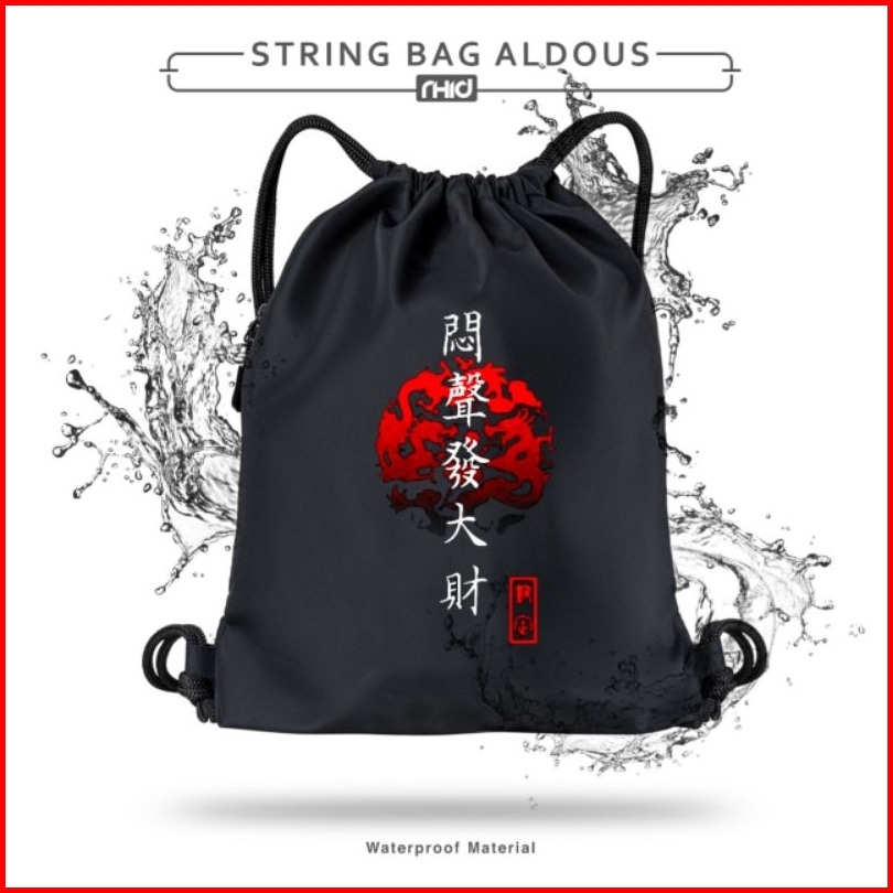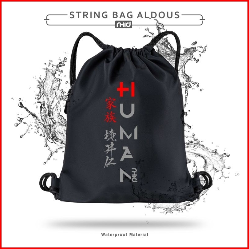 Rhid - Tas Ransel Serut Hitam Original Futsal Olahraga Stringbag Anti Air