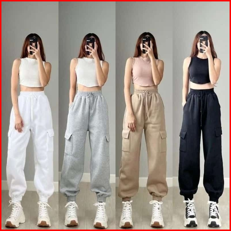 Rhid - Celana Joger Wanita Sweatpants Premium Koren Style Jumbo Bahan Import Nyaman Di Pakai