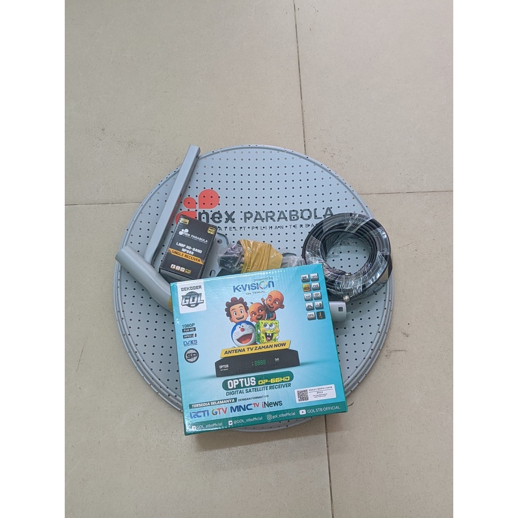 SATU SET LENGKAP PAKET PARABOLA MINI NEX / KVISION ABU ODU 45CM ( MESS / BOLONG BOLONG )