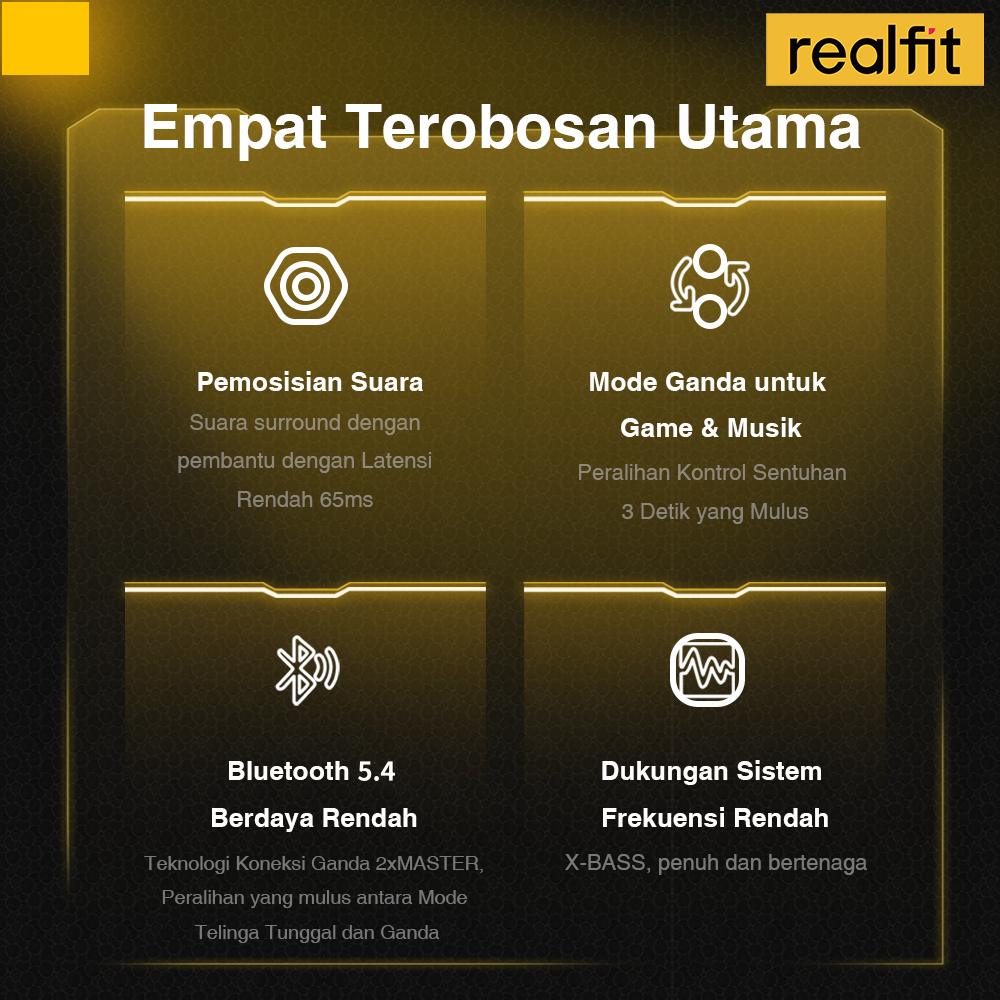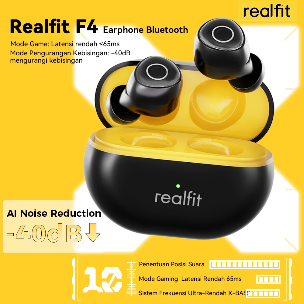 【Stok Lokal】Realfit F4 AI Noise Cancelling Bluetooth Earphone dengan Kontrol Mikrofon Aplikasi Kustomisasi EQ Latensi Re