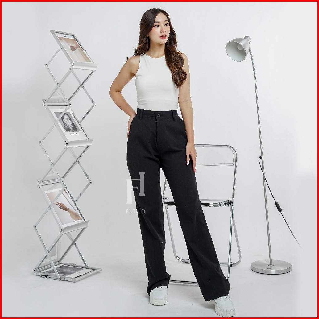 Futi - Celana Cutbray Highwaist Wanita Linen Crinkle Premium