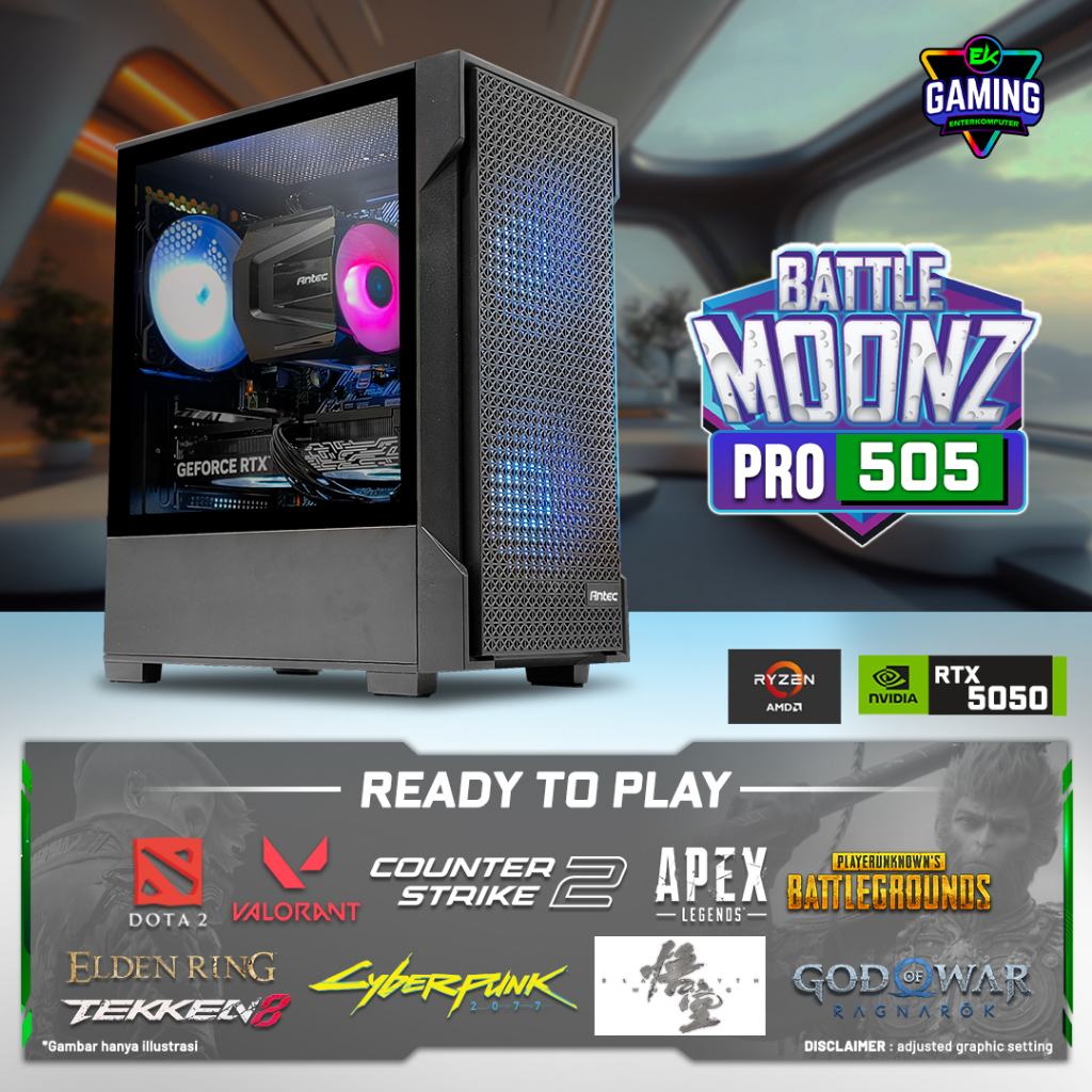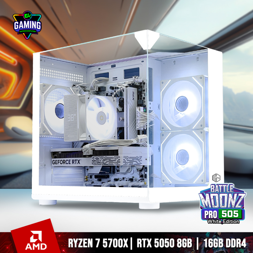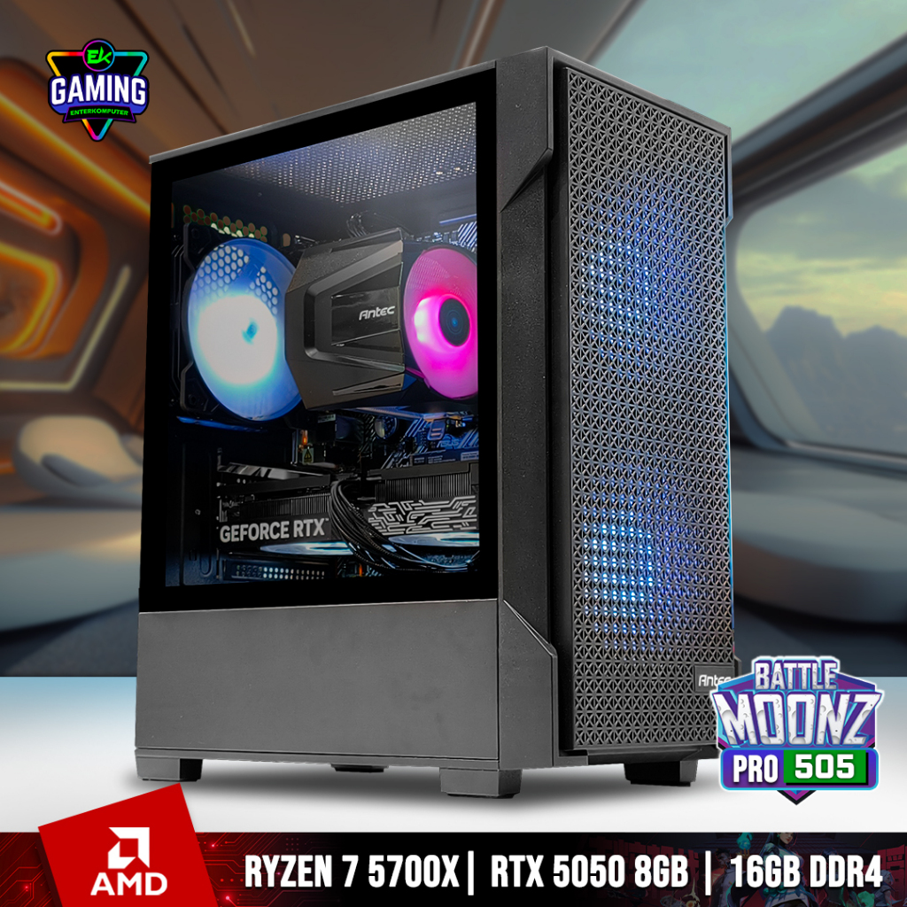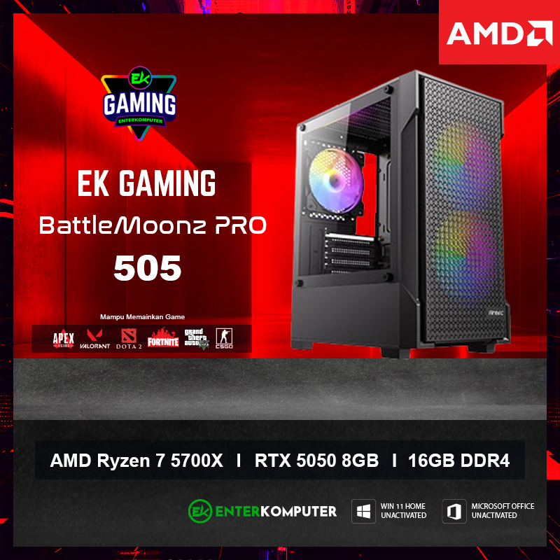 EK Gaming - BattleMoonz Pro 505 - PC Rakitan Gaming Ryzen 7 5700X RTX 5050 8GB RAM DDR4 16GB - Enter Komputer