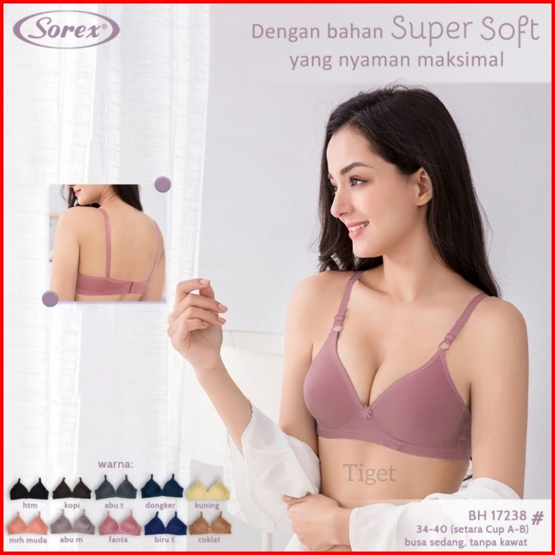 1 Pcs Bh Bra Busa Sorex 17238 Wanita Remaja Dewasa Ukuran Size 34 36 38 40 Tanpa Kawat Dan Busa