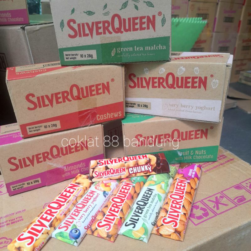 SilverQueen 22gr Mini - 1 Box Isi 10 Almond Mede Mix Rasa Lengkap, Coklat Silver Queen Chunky Bar