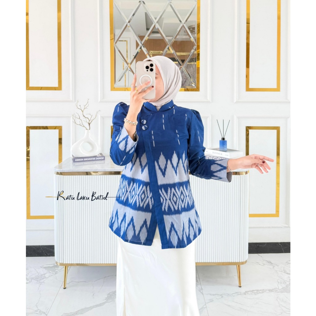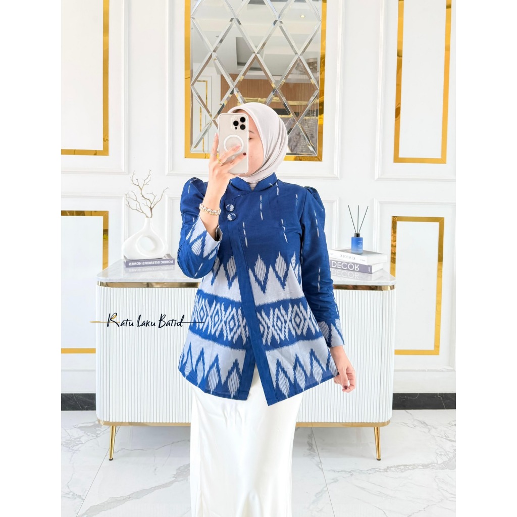 Atasan batik wanita modern lengan panjang puffy blouse Edora model kebaya janggan by ratu laku batik baju formal