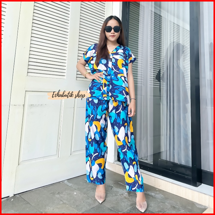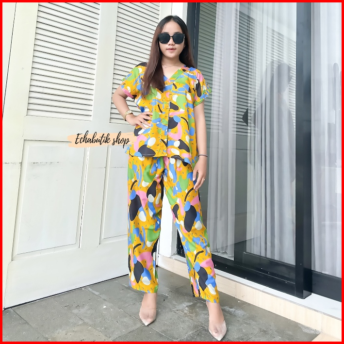 Piyama Kancing Busui Piyama Rayon V-neck Piyama Busui Baju Tidur Murah