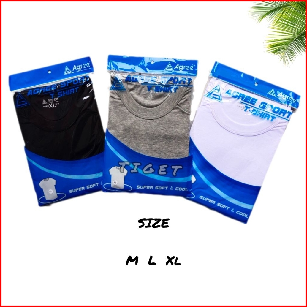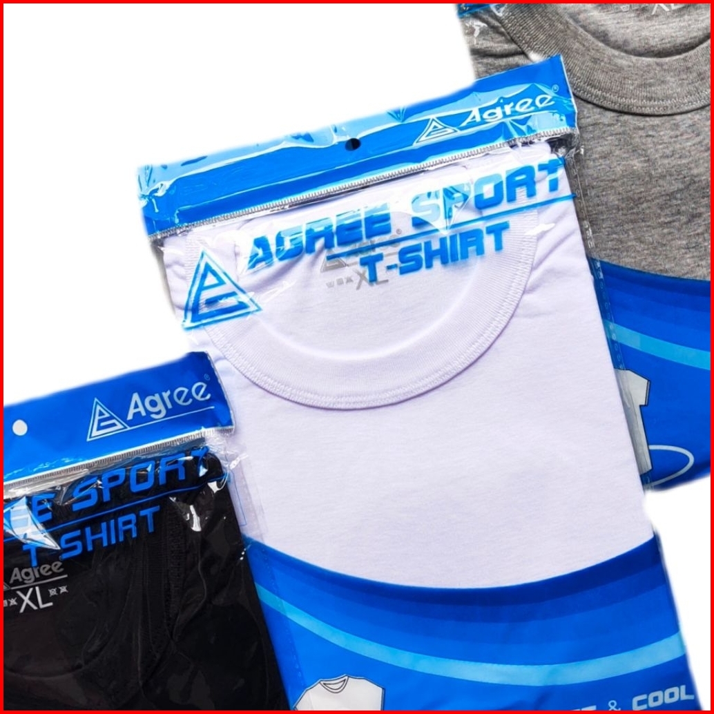 1 Pcs Kaos Oblong Lengan Pendek Pria Agree Sport Hitam Putih Abu O - Neck Berkualitas Size M L Xl