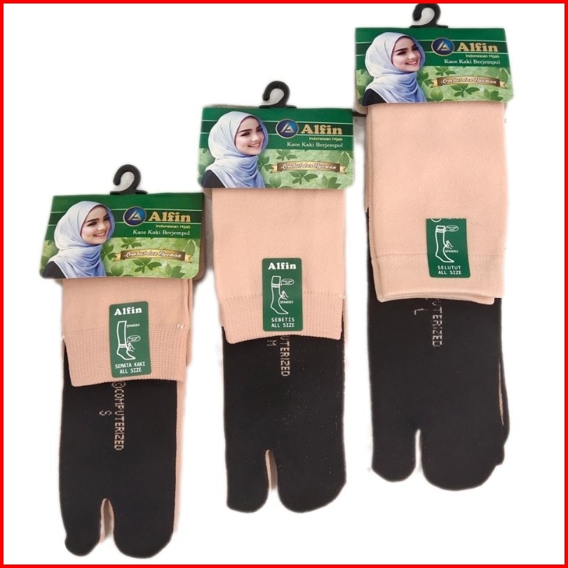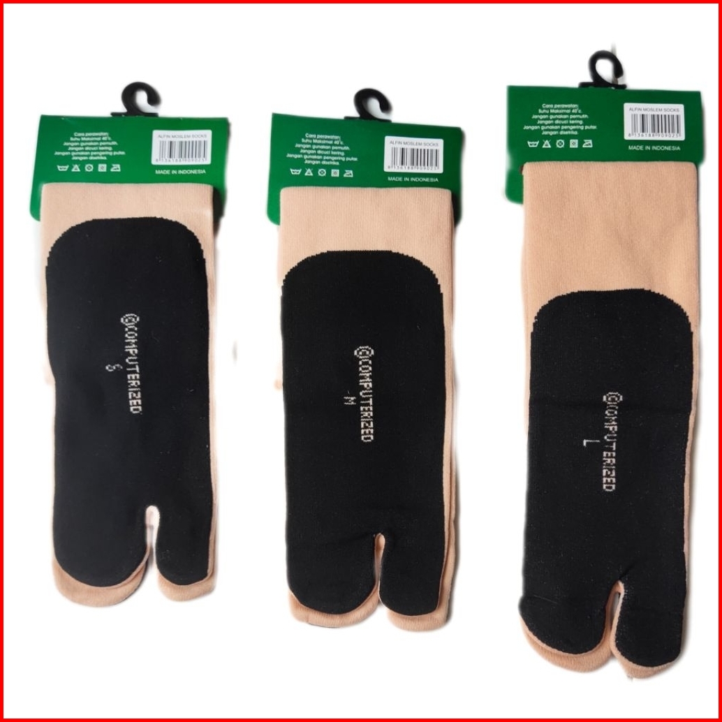 3 Pcs Kaos Kaki Jempol Muslimah Cream Telapak Hitam 2 Jari Wanita Dewasa Remaja Bahan Lembut