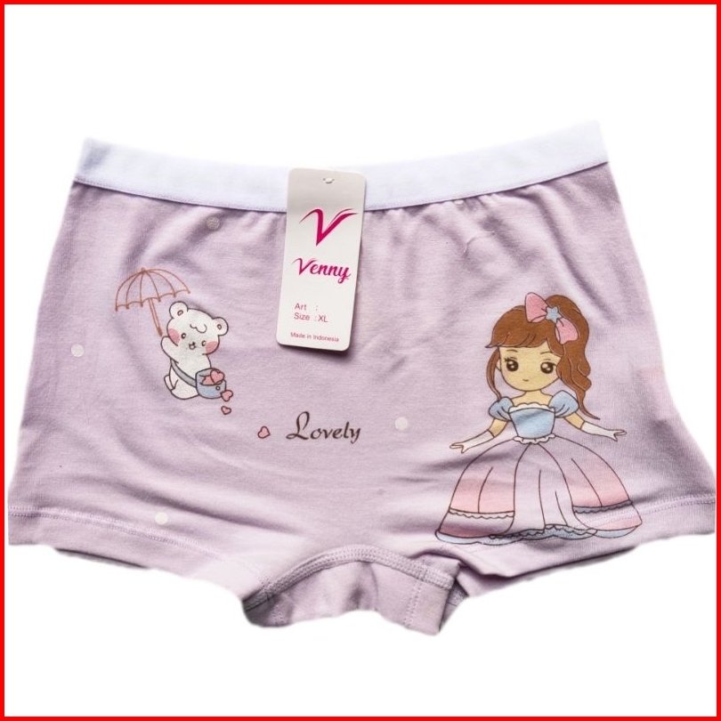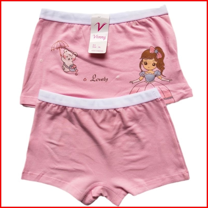 3 Pcs Celana Dalam Boxer Venny Motif Anak Cewe Perempuan Bahan Katun Murah Berkualitas Size M L Xl