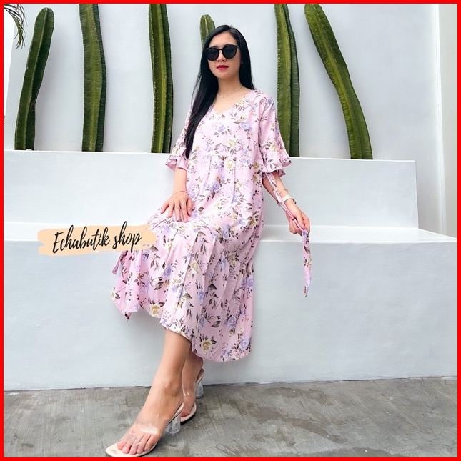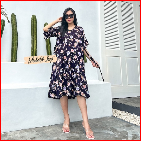 Daster Dress Kamila Panjang Bunga-bunga Rayon Premium