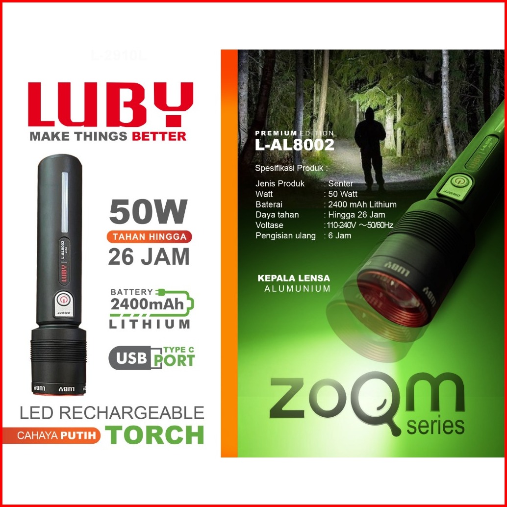 Senter Led Zoom Luby L-al8002 50watt Tahan Hingga 26jam - Cahaya Terang - Waterproof